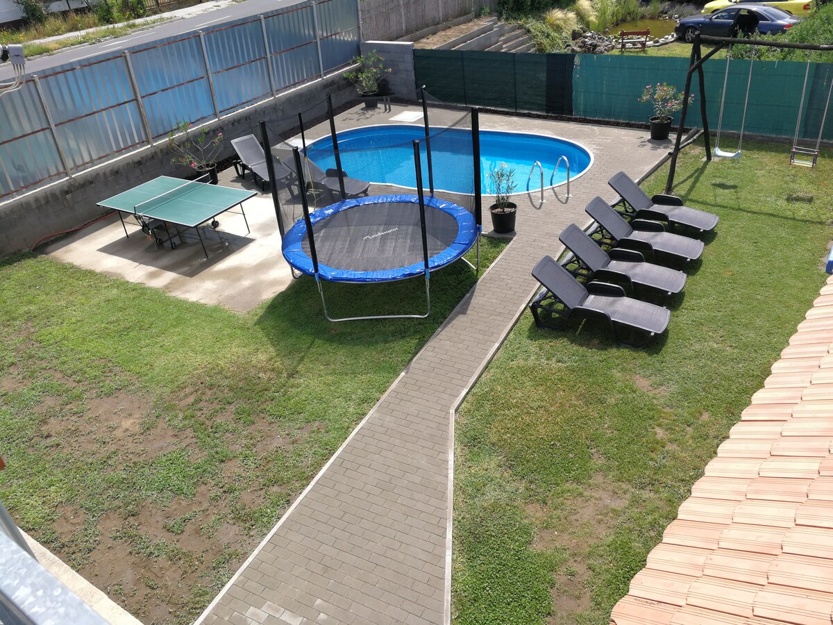 Indawo elungele umndeni ebukeka kahle, eqhele ngamamitha angu-600 ukusuka e-Lake Balaton. Yonke indlu ingeyakho. Amafulethi ahlukene angu-2, amakamelo okulala angu-4, amagumbi okugezela angu-2, ikhishi elingu-2, amathala angu-2 avulekile, indawo yokubhukuda eyindilinga, ingadi enkulu. Gcoba ngamalahle nezinongo zamahhala. Amabhayisikili (izingcezu ezingu-4) angasetshenziswa. Ikhofi lokwamukela, itiye namanzi kuyanikezwa I-wifi yamahhala I-Netflix, i-satellite TV ifakiwe Ikhishi elinakho konke elinomshini wokuwasha izitsha, ifriji elikhulu, uhhavini, i-AirFryer, umshini wekhofi, i-toaster, iketela, i-mixer, amafutha omnqumo, uviniga, izinongo