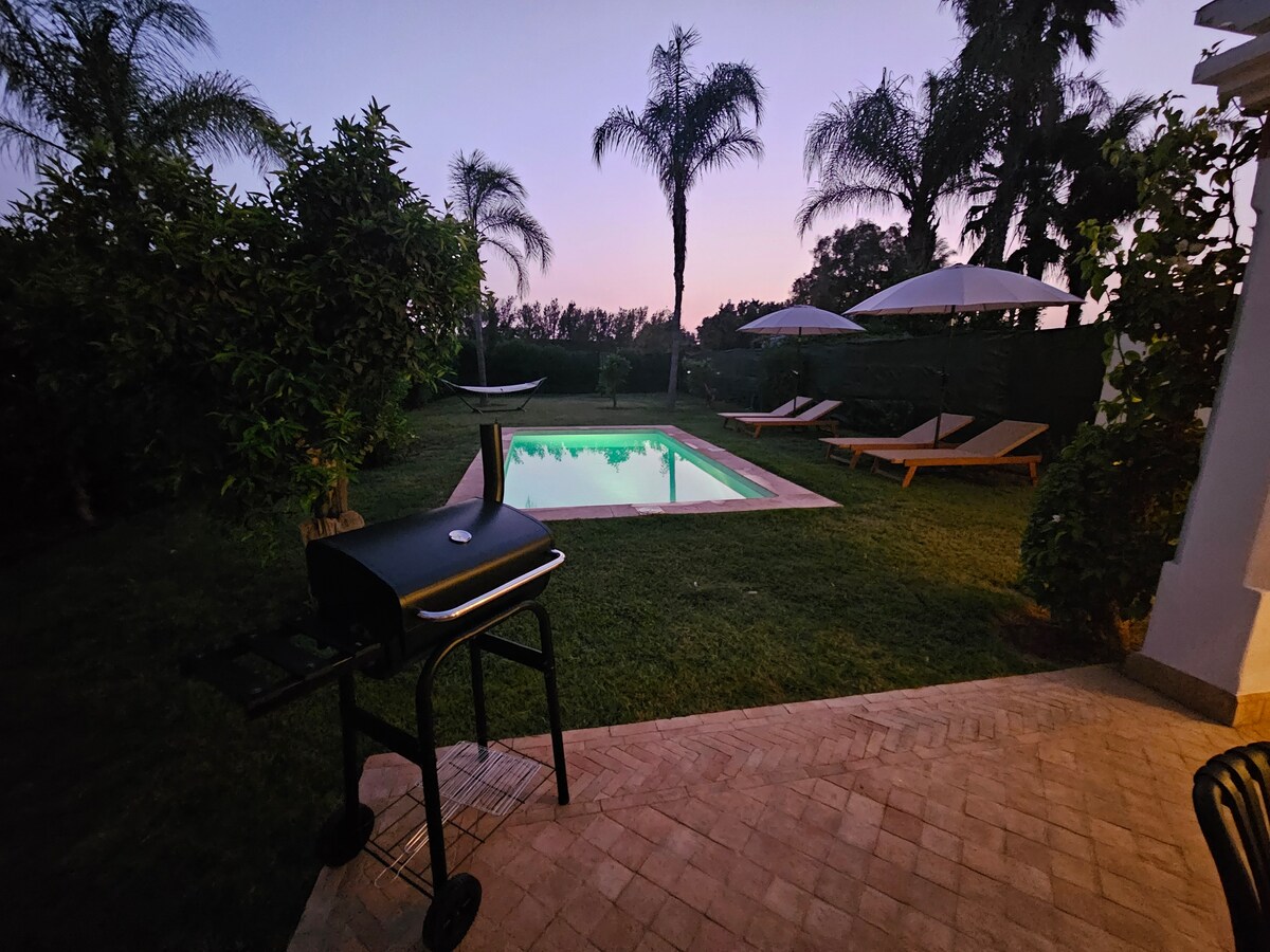 Magnifique Villa à louer avec piscine sans vis à vis à l'Orangeraie de Dyar Shemsi. 3 pièces : Salon, cuisine ouverte, deux chambres, salle de bain, patio, deux terrasses, grand jardin. La villa se situe dans un domaine sécurisé à 35 minutes d’Agadir ! Dispo dans la résidence : - Salle de sport - Terrain de tennis - Pratice de golf - Table de ping-pong - Piscine commune - Salon de beauté - Épicerie - Bibliothèque - Plusieurs lacs - Promenade - Service Gratuit golfette