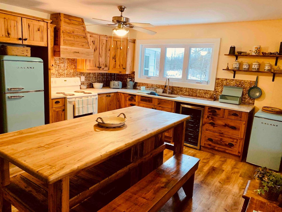Imizuzu evulekile yemvelo eya e-Perth! Ipulazi lethu lilungele imindeni enezingane ukuba ijabulele ukuhlala ezweni. Hlala nezimbuzi nezinkukhu zethu ngemuva, noma ujabulele ingadi yethu entsha yenganekwane! Ikhaya lethu lamapulangwe lango-1850 linamakamelo okulala angu-4, amagumbi okugezela angu-3, ikhishi lebhodi lezinqolobane, igumbi lokuphumula elivulekile elibheke i-Blueberry Creek, negumbi lokudlela elifudumele elinetafula lasepulazini. Igumbi lethu lokuphumula lesibili elinomtapo wezincwadi, imidlalo namathuluzi akumema ukuba udlale futhi uphumule. Sicela uqaphele ukuthi akukho ukubhukha kwabantu abadala kuphela.