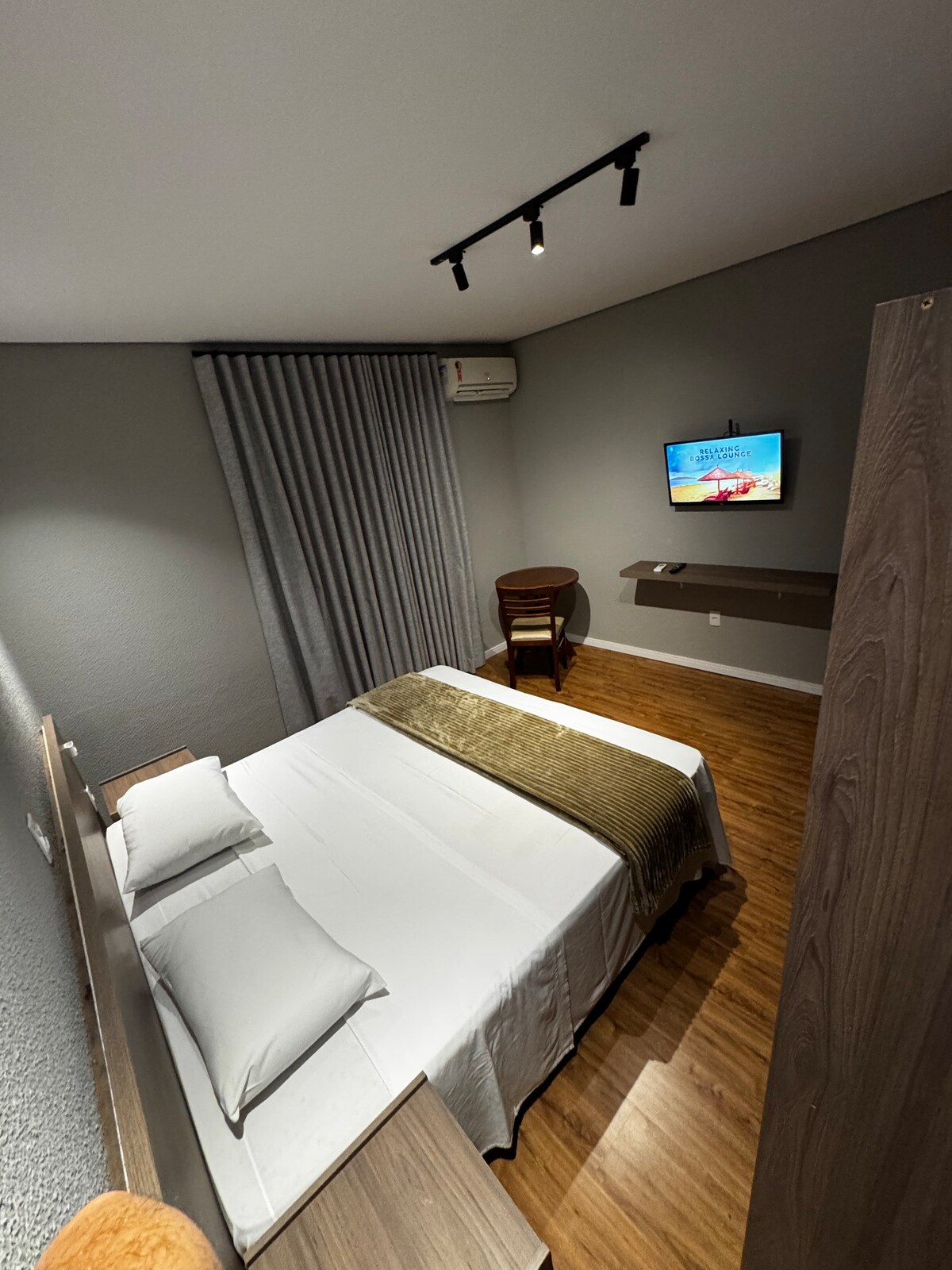 Flat de 1 quarto localizado dentro de hotel no centro de Telêmaco Borba. Confortável e funcional, ideal para quem busca praticidade em viagens a trabalho ou lazer. Conta com recepção 24h, estacionamento gratuito, além de estar próximo a academia, mercado, farmácias e comércios em geral. Excelente localização com segurança e comodidade.