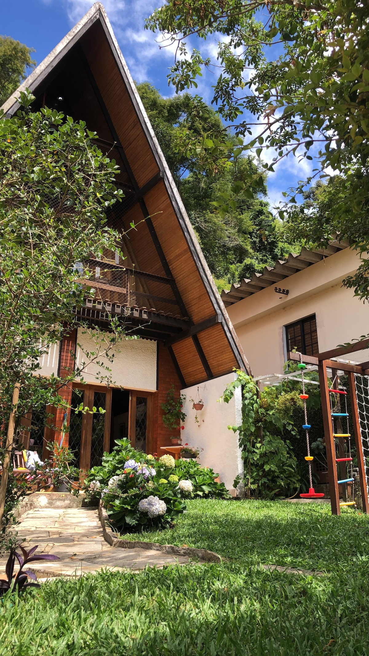 Indlu yeholidi eyakhiwe ngokhuni yendawo ethulile yalabo abafuna ukuthula nokuthula e-Teresópolis - Isifunda sase-Serrana seSifundazwe sase-Rio de Janeiro. Indawo iqukethe igumbi lokugezela eliyi-1 lomphakathi, ikhishi elinezinto ezidingekayo, ikamelo lokulala elilodwa negumbi lokuphumula elithokomele elingasetshenziswa njengenye indawo yokulala. Indawo yayo yangaphandle inompheme onendawo enhle yezintaba zesifunda, indawo yokosa nendawo yokubhukuda, kokubili okukhethekile ezivakashini.