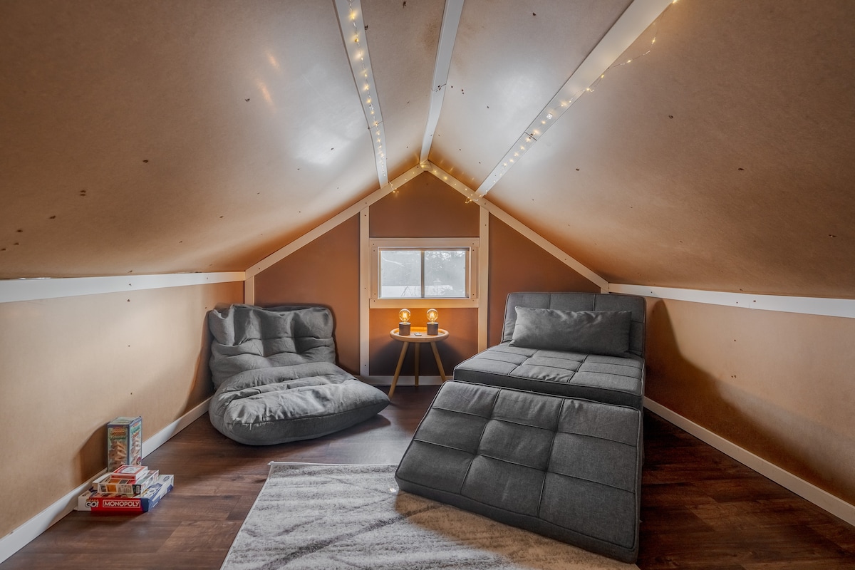 Ihlala enkabeni ye-Old East Village e-London Ontario. Le ndlu yezivakashi esegcekeni elingemuva lendawo enhle enamapulangwe ikude nomgwaqo futhi omakhelwane bayishiya iye eholidini elithulile, elingaphazamiseki. Uvulande ohlanganisiwe ngaphandle, i-hottub nendawo yokuphumula etholakalayo kulawo ma-hangout asehlobo amnandi ebusuku. Imizuzu ukusuka kokunye kokuzijabulisa nokudlela okungcono kakhulu e-London! Umbhede Omkhulu ekamelweni lokulala. Usofa wokudonsa egumbini lokuphumula.
