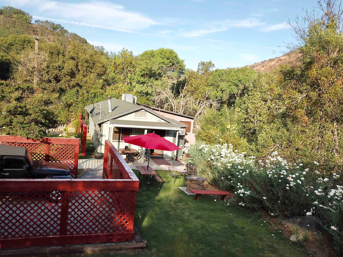 Uyemukelwa ku-Copper Springs! Le ndlu eyakhiwe ngamapulangwe enezitezi eziningi ihlezi phezu kwentaba yehlathi elisezintabeni, imizuzwana eya enkabeni yedolobha futhi iqhele ngamamitha angu-10 ukuya emnyango we-Sequoia National Park. IG: @CopperSpringsHomestead Retreat into nature with wide hiking and river hangs within minutes of the cabin. Emini, phumula kwenye yezindawo ezibukeka kahle e-Moro Rock nase-Sierras enkulu. Ebusuku, hlala ngaphansi kwezinkanyezi nezibani zezintambo. Ngamathani esikhala sangaphandle, thina (kakhulu) inja enobungane.
