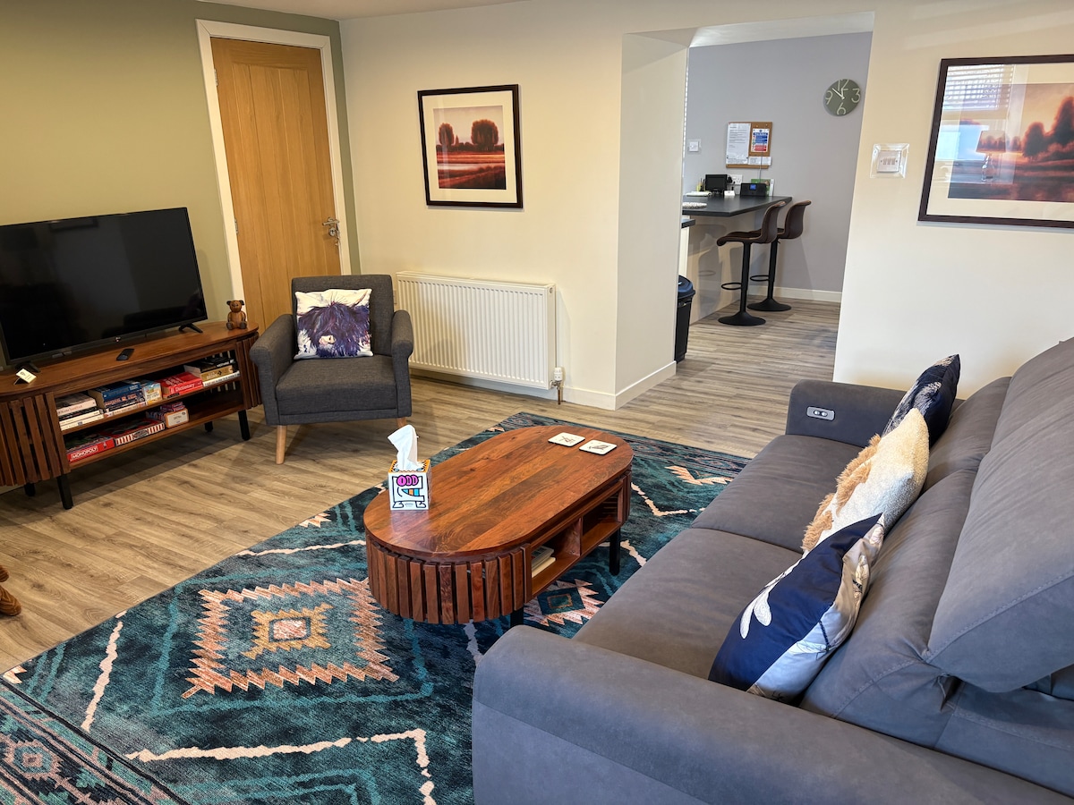 Ikamelo lethu lokulala elinethezekile elisesitezi esingu-2, ifulethi elinakho konke elibheke igceke elimnandi, eliphrayivethi eliseduze netheku lase-Wick ku-NC500. I-wifi enhle, usofa kagesi ne-TV enkulu iyakwamukela ngemva kohambo olude noma usuku olumatasa lokuhlola isifunda sethu esihle sase-Caithness. Uhambo olufushane ukusuka esiteshini, ezindaweni zokudlela, ezinkantini nase-Pulteney distillery edumile. Indawo yokupaka yamahhala, evikelekile etholakalela izithuthuthu, amabhayisikili noma imoto evamile, uma kudingeka. HI-00936-F