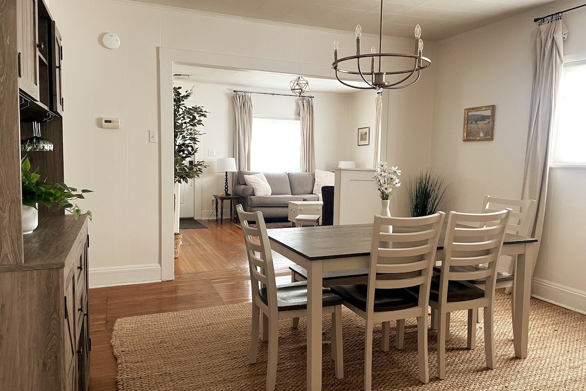 Woza uhlole leli khaya elincane elinezihloko zokugibela e-New River Gorge, elinokufinyelela okulula e-Fayetteville! Imizuzu engu-1 ngemoto noma imizuzu engu-15 ukuya edolobheni ngezinyawo. Le ndawo ehlelwe kahle inikeza konke okudingayo ukuze usekele uhambo lwakho olujabulisayo lwe-New River Gorge kuyilapho ulondoloza umkhondo omncane kodwa onethezekile. Le ndawo ekhumbulekayo ayivamile. Zizwe ukhululekile nge-super-insulation, umoya kanye nepompo yokushisa ethokomele. Songa ku-loft kumatilasi okhumbula amagwebu. Jabulela izitezi zoqalo nogesi welanga.