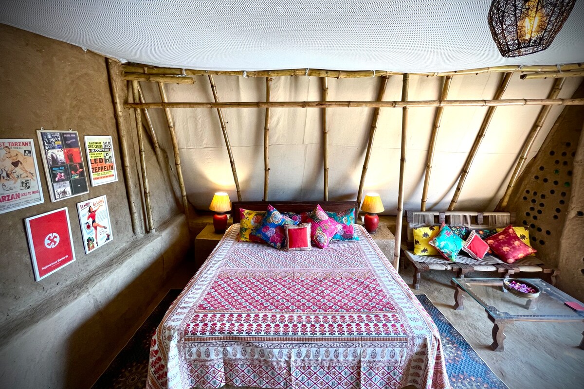 Escape to a sustainable stone house in the Aravali mountains. Embrace farmstay bliss with panoramic views, en-suite bathroom, A/C, outdoor shower. Learn sustainable living, explore desi Gir cows, Asil chickens, butterfly garden, native nursery. Trek, relax, reconnect. Perfect for families, couples, corporate retreats. Book now for an unforgettable experience.