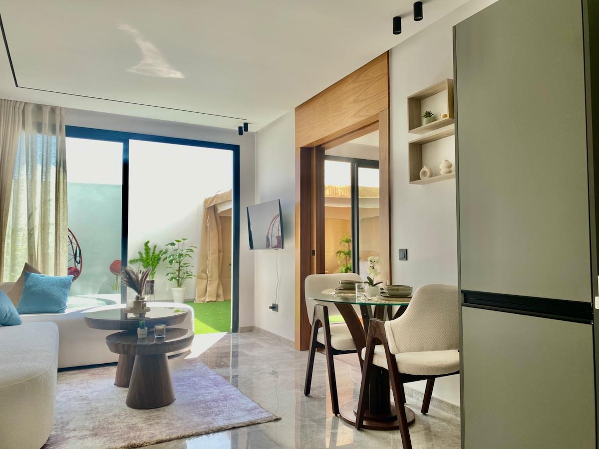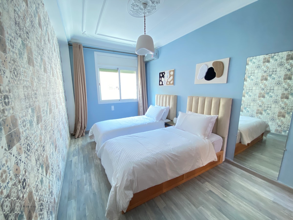 Thola ikhaya lethu eliyingqayizivele maphakathi ne-Casablanca. Indawo yokuhlala yase-Solstice intsha futhi ivikeleke kahle ngamakhamera amahora angu-24 endaweni yokungena. Itholakala kahle phambi kwemakethe, uhamba ngezinyawo imizuzu engu-5 ukusuka e-Hassan II Mosque nase-Corniche, imizuzu engu-3 ukusuka esibhedlela... Ifulethi elisha nesimanje elinekamelo lokulala, igumbi lokuphumula, itafula lokudlela, ikhishi, igumbi lokugezela novulande elinakho konke. Ukuhlanza kuqinisekisiwe ngaphambi nangemva kokuvakasha kwakho ukukunikeza indawo yokuhlala eyamukelekayo nenhle, ngokwanele ukuba ube nokuhlala okumnandi! ☀️
