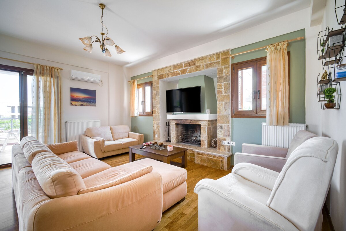 Kuyinto 90sqm efulethini esitezi 4,eduze kolwandle, ekhanyayo,ukhululekile futhi airy.It has 2 balconies nge ukubukwa okumangalisayo, omunye maqondana nolwandle futhi Gerania,kuyilapho omunye maqondana Akrok vs .Kuwulungiswa ngokwesine (November 2019) nefenisha yesimanje endaweni ethule futhi ephephile enendawo yokupaka elula. Kusele imizuzu engu-5 kude nebhishi(Kalamia),kodwa futhi maphakathi ne-Corinth nomgwaqo wabahamba ngezinyawo kanye nezitolo zokudlela. Ifanele imibhangqwana, abangane noma imindeni enezingane.