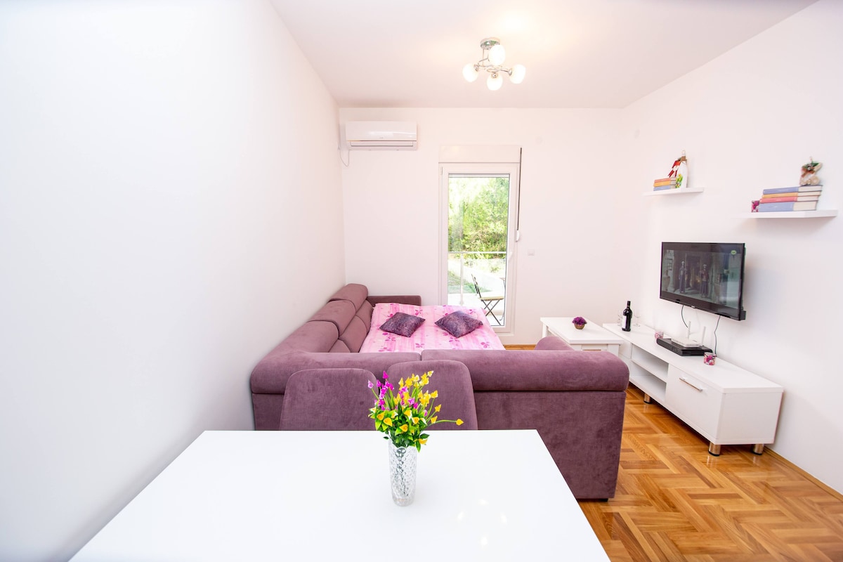 38m² / 410ft² Brand New, Full Refurbished Waterfront Stone Apartment, ungaya endaweni yokudlela ehamba phambili kanye ne-jetty kakhonkolo. ☞ Izindawo ze-Panoramic ezingaphazamiseki ze-Boka Bay ☞ Amabhodi Okugwedla Afakiwe ☞ I-Balcony Enkulu ene-Private Outdoor Loveseat ☞ 50m kuya kokuthi Indawo Yokudlela Eyaziwayo 'Porto Bjelila' ☞ I-Wifi engu-96mbps ☞ Phuma uye olwandle ☞ Itholakala e-Tranquil Fisherman's Village