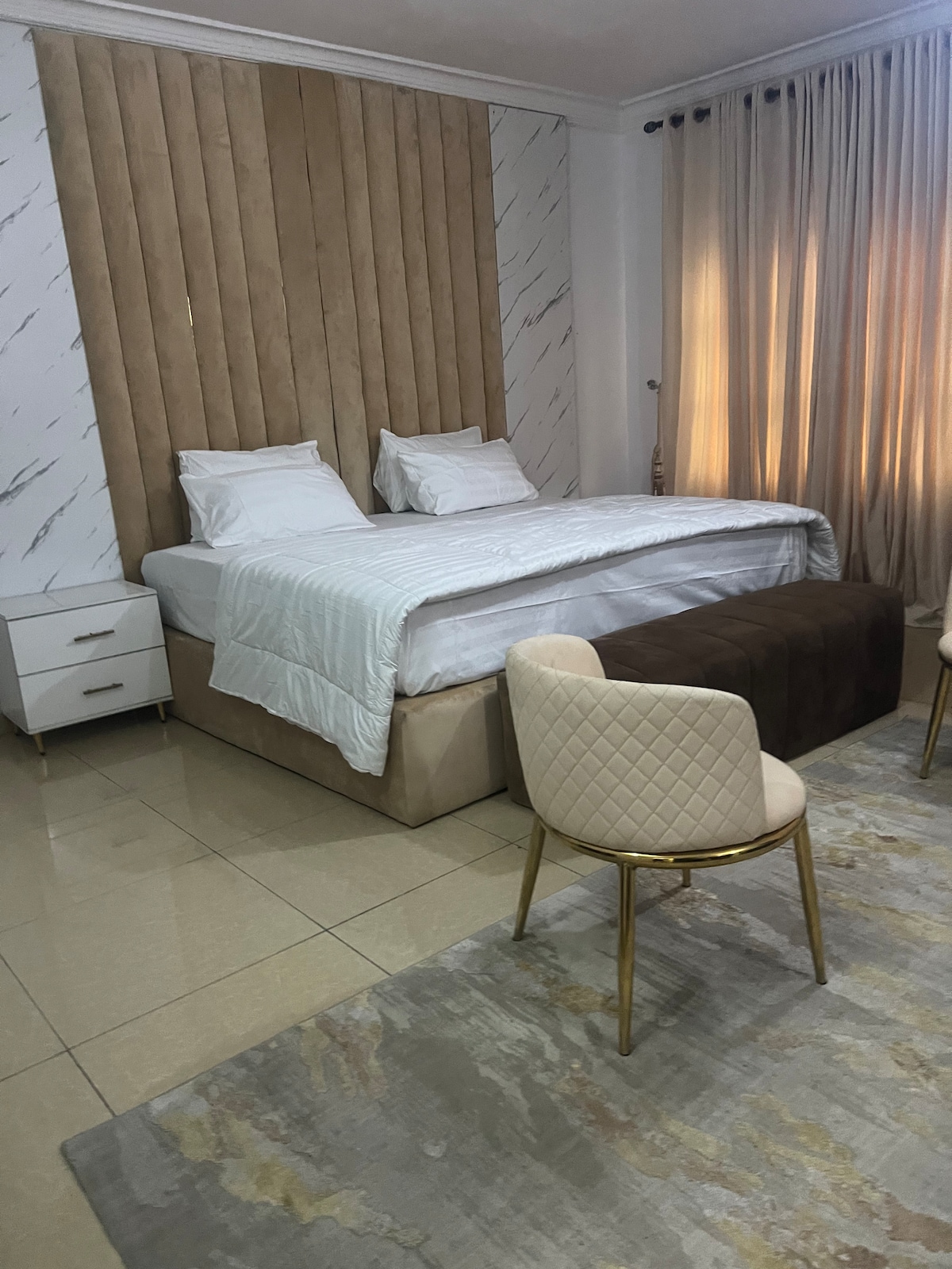 Ifulethi lihlanganisa i-AC, amakhabethe ekhishi, i-microwave, ifriji, umshini wokuwasha, phansi okunamathayili, i-smart TV, ne-wardrobe. Ukunikezwa kukagesi: i-solar, i-inverter, i-NEPA, imitha ekhokhelwa kusengaphambili, ne-generator. UKUNIKEZWA kukagesi: UGESI 24/7; i-inverator ayinikezi i-AC noma ifriji. Izivakashi zifaka i-generator. Idiphozithi yokuqapha ebuyiselwayo engu- ₦ 30,000 iyasebenza uma kungekho monakalo owenzekayo. Siyabonga.
