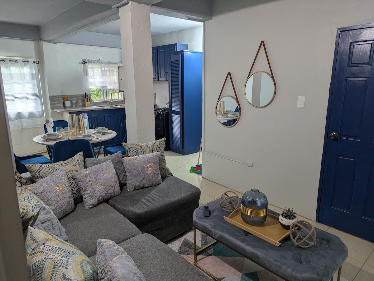 Ifulethi elithokomele, elinezitshalo, elizimele elise-Mt. Irvine, Tobago, Tobago. Indawo yethu yokuhlala ihamba kalula nje emizuzwini engu-5 ukusuka e-Mt. Ibhishi lase-Irvine ne-Backbay Salt Pools/Beach. Ifulethi ngalinye linamakamelo angu-2 avulekile, igumbi lokugezela, indawo yokuhlala nekhishi. Lonke ifulethi lilala abantu abangu-4 ngokunethezeka. Izindawo zokuhlala zezivakashi ezengeziwe zingahlelwa lapho zicelwa. Isixwayiso, uma uzwela ukushisa, sicela uphawule ukuthi leli fulethi liyifeni kuphela futhi lingashisa.