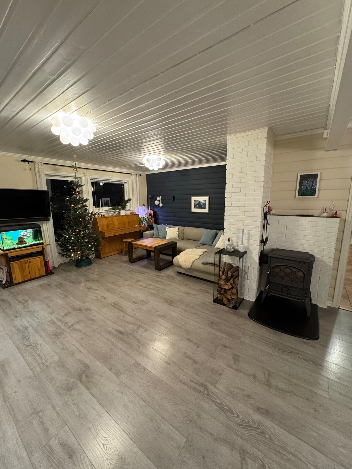 Indlu eyakhiwe ngamapulangwe enhle yesimanje ebukeka kahle egumbini lokuphumula. Indawo enhle kakhulu yokubona izibani zasenyakatho emafasiteleni endlini eyakhiwe ngamapulangwe noma ethafeni, lapho izithombe eziningi esikhangisweni zithathwa khona. Iziqondiso ze-Northern Lights zivame ukuma ngaphandle kwendlu eyakhiwe ngamapulangwe ngoba iyindawo enhle kakhulu ye-Northern Lights. Jabulela ukuthula nokuzola kwendawo enhle kule ndlu eyakhiwe ngamapulangwe evulekile emizuzwini embalwa ukusuka maphakathi ne-Tromsø nesikhumulo sezindiza. Jabulela ipharadesi elisezingeni eliphezulu lezibani zasenyakatho, izintaba, ihlathi, amachibi asezintabeni nolwandle, konke kusemnyango wakho.
