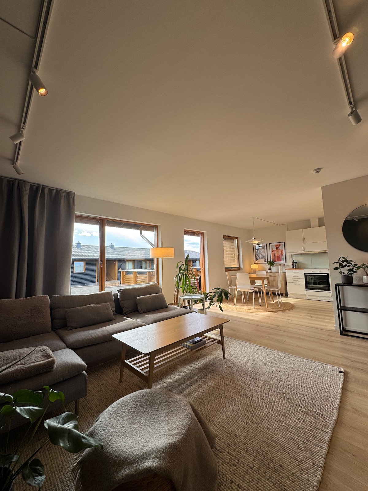 Ifulethi elisha nelanamuhla eline-terrace/ingadi enhle. Itholakala endaweni ethulile yokuhlala enokuxhumana okuhle kakhulu kwebhasi enkabeni yedolobha (imizuzu engu-5 ukuya esimweni sebhasi). Isikhala sokupaka esingu-1. Ibanga lokuhamba ngezinyawo ukuya ku-NTNU. Ifulethi likulungele kahle ukuhlala kwesikhashana, kodwa futhi isikhathi eside. Ikamelo lokulala elinombhede olala abantu ababili, elinamathuba emibhede eyengeziwe engu-2.
