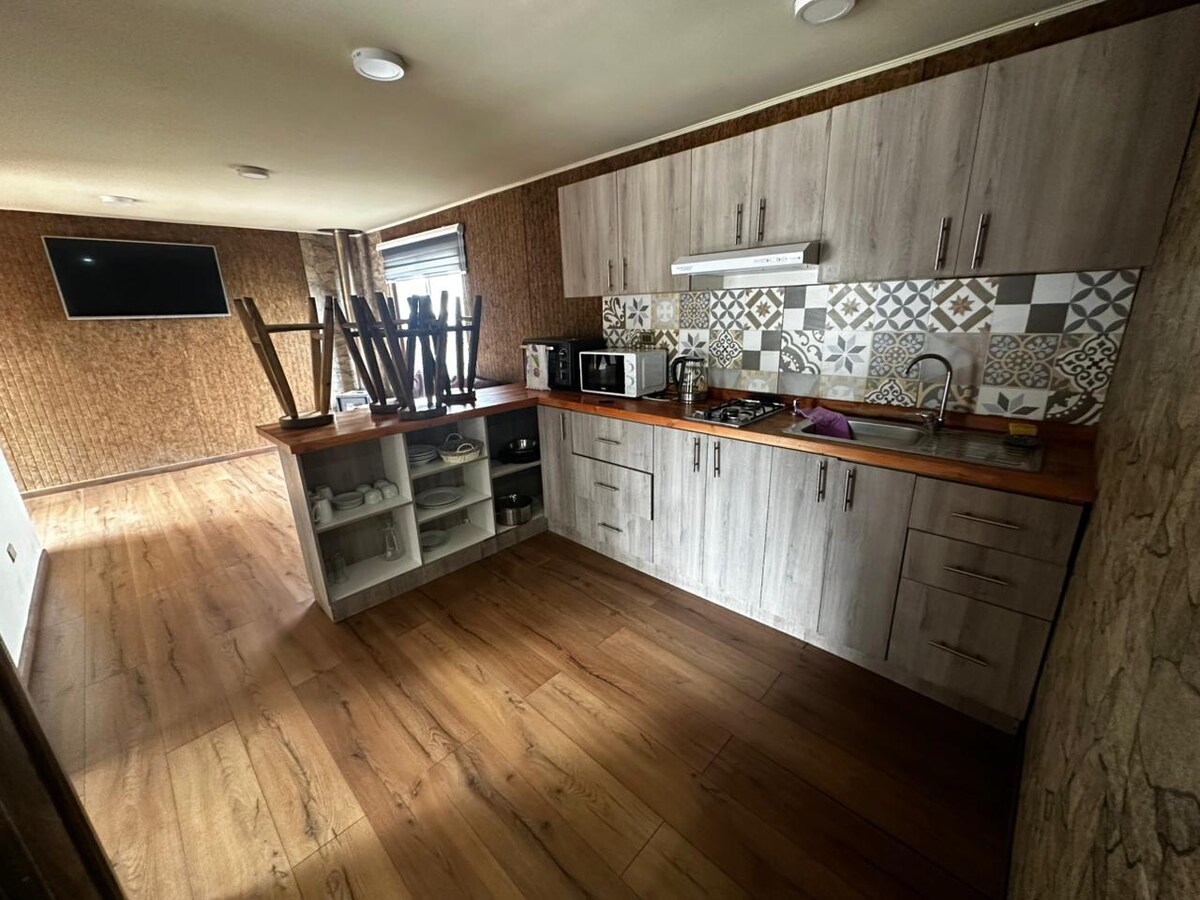 Sungula izinkumbulo ezingenakulibaleka nomndeni wakho, umlingani noma abangane kule ndawo ethokomele nethule, lapho ungajabulela khona ukubuka ulwandle lwase-Araucanía futhi uphumule ngaphakathi kwesakhiwo esihle sasemaphandleni esinefenisha eyenziwe ngezandla, nayo enakho konke ukunethezeka ukuze ube nokokuzithokozisa okuhle nokufudumele edolobheni elihle lase-Puerto Saavedra.