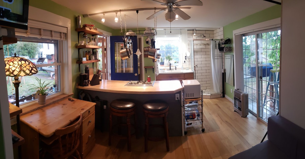 I-studio esisha sha endaweni enokuthula. Indlwana inakho konke okudingayo - ikhishi elinakho konke, umshini wokuwasha/wokomisa, umbhede omkhulu, ngisho novulande wangaphandle onezihlalo ezine ze-adirondack nomgodi womlilo we-propane! Indlwana ihlezi endaweni enhle ngokuphelele ebangeni lokuhamba ngezinyawo ukusuka edolobheni. Woza ubone ukuthi zonke izivakashi zethu beziphi futhi zijabulele i-Airbnb ethokomele kakhulu e-Moscow - siyajabula ukukubungaza!