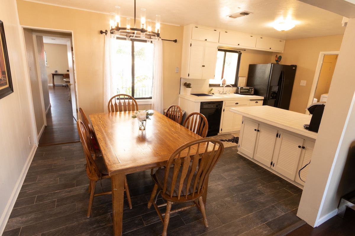 I-Iris House iseduze nezitolo zase-Visalia, izindawo zokudlela, izindawo zokwenza utshwala & Isikhungo Somhlangano. Imizuzu engu-40 ukuya e-Sequoia National Park, imizuzu engu-30 ukuya e-Three Rivers , imizuzu engu-45 ukuya e-Fresno namahora angu-2.5 ukuya e-Yosemite.House inamakamelo okulala angu-3, amagumbi okugezela angu-2, igumbi lomndeni w/indawo yomlilo, igumbi lokuphumula, igumbi lelondolo, ikhishi elinakho konke, indawo yokudlela, indawo yokubhukuda enezitezi, igceke elingemuva, ichibi le-Koi, i-BBQ, i-fire-pit, i-basketball nezindawo zokuphumula. Indawo ezungeze idolobha elikhulu enokuthula. Awekho amaphathi. Ukubhema kuvunyelwe egcekeni elingemuva kuphela.