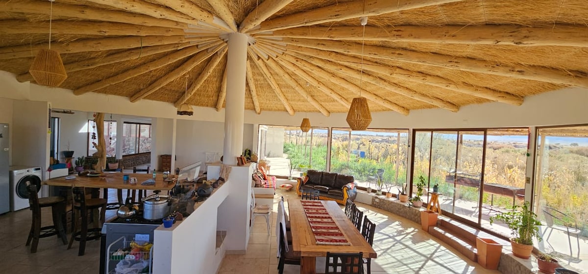 Thola indawo yokhokho, eyinkulungwane futhi eyingqayizivele enezinto eziphilayo, i-flora nezilwane zomdabu zingenamsebenzi, kule ndawo esezingeni eliphezulu endaweni enelungelo ebheke esigodini senyanga kanye nentaba kasawoti, enikeza umbono omuhle wentaba-mlilo yase-Licancabur kanye nohla lwentaba lwentaba lwentaba lwentaba-mlilo olufana ne-Juriques, i-Lascar, i-Kimal, njll. Siphinde sikunikeze umbukiso wezinkanyezi omangalisayo njengoba kungekho ukungcola okulula. Phumula kule ndawo yokuvakasha eyingqayizivele nethulile.