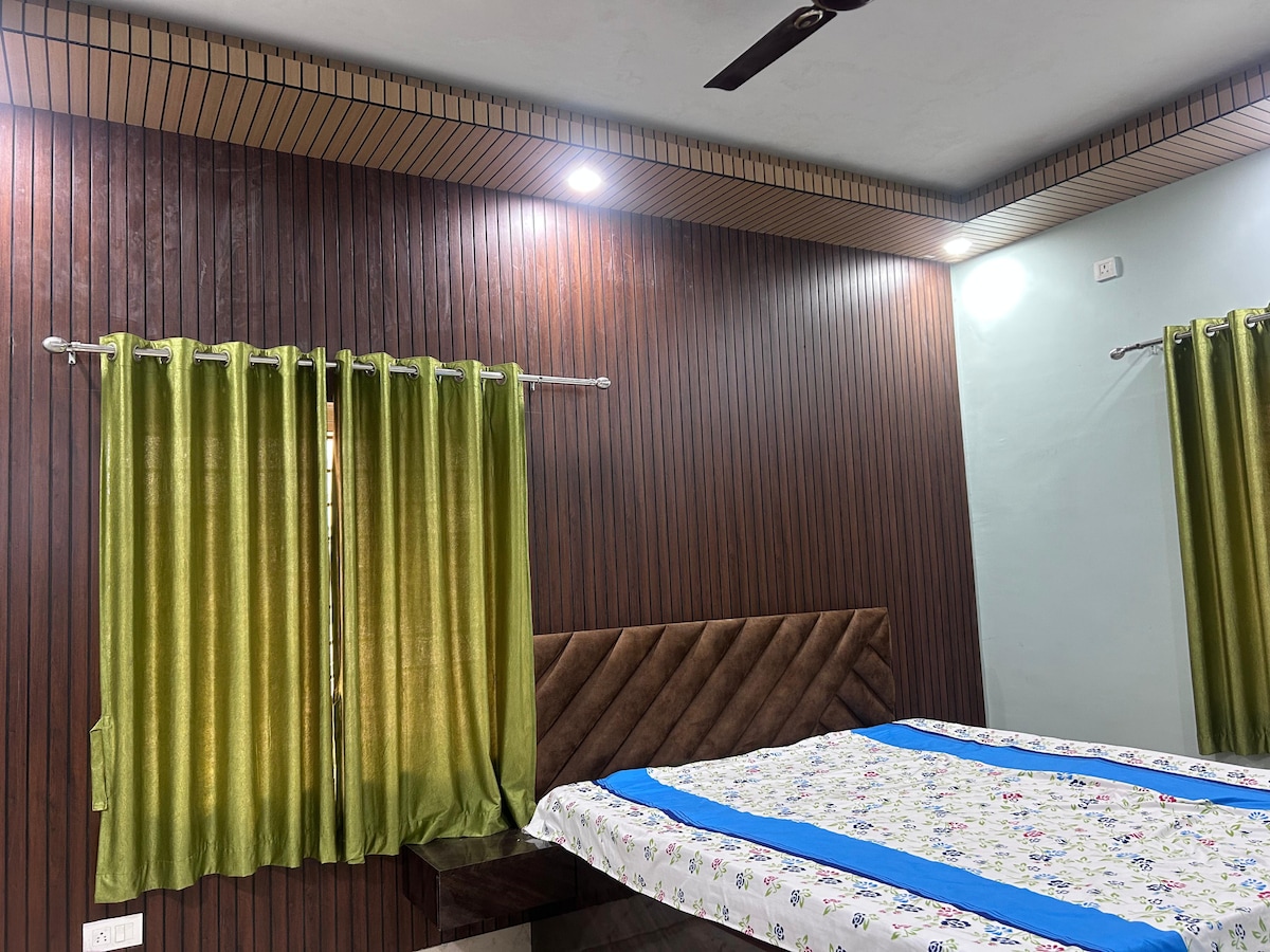 it's the first floor of a bunglow with 3 bedrooms and a big hall with kitchen it is for staying guests during wedding or other function in house the number of person is not limited but arrangements must be done of extra quilt and matress by your side