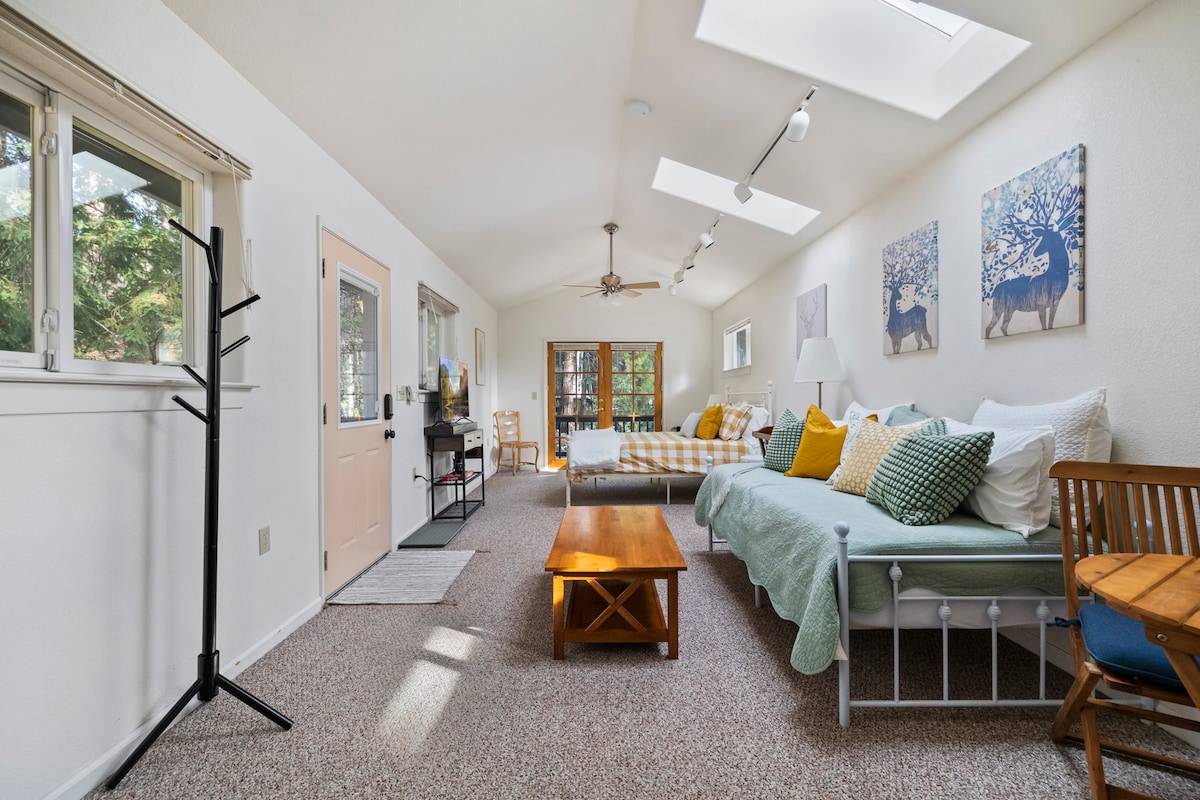 Ngiyakwamukela Ezihlahleni! Ngiyabonga ukwabelana ngenjabulo yami nenjabulo yami kanye neyakho. Uzobe uhlala estudiyo esithandekayo esinethezekile esinefriji, i-microwave nakho konke okudingayo ukuze ujabulele ukudla okulula. Ungaphumula ngaphandle emphemeni ophrayivethi oncabangela imisindo nezindawo zemvelo noma ungathatha uhambo lwemizuzu emihlanu uye edolobhaneni lase-Twain Harte lapho ungajabulela khona i-espresso, izindawo zokudlela eziningi ezimnandi nezitolo eziyingqayizivele. Woza uzibonele ngokwakho:)