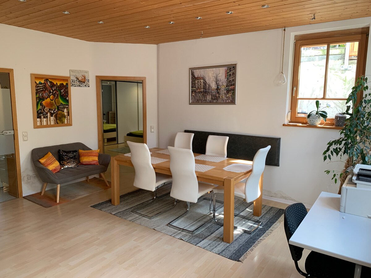 Ifulethi lesimanje elithulile labantu abangaba ngu-2-4, ikhishi lakho, ishawa, indawo yokupaka Lena yi-inthanethi EPHEZULU - esheshayo ngokuxhumeka kwe-fiber optic. I-WLAN esheshayo, ukusebenza kwangempela ku-inthanethi okungenzeka - ingqungquthela yevidiyo ngaphandle kwama-jerks Imizuzu engu-5 ukuya ku-S-Bahn S4 Türkenfeld uhamba ngezinyawo Imizuzu engu-40 ukuya e-Munich Central Station Imizuzu engu-50 ukuya ku-Oktoberfest (S-Bahn kuya ku-Hackerbrücke bese uhamba ngezinyawo) Imakethe ye-Edeka ngezinyawo imizuzu engu-6 I-Gasthof Hartl ‘zum Unterwirt’ maphakathi nedolobhana imizuzu engu-12 uhamba ngezinyawo Ukuya ezintabeni isib. ukuya e-Garmisch-Partenkirchen imizuzu engu-80 ngemoto