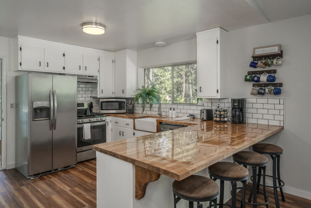 Ngiyakwamukela ku-Spruce Hideaway! Leli kamelo lokulala elingu-4, ikhaya lokugezela elingu-2 elilala abantu abangu-10, liyindawo ekahle kakhulu yokuphumula entabeni! Leli khaya libonisa konke – ukushisa okuphakathi ne-A/C, ikhishi elinakho konke, ikamelo lomdlalo, nompheme omkhulu onobhavu wamanzi ashisayo, umgodi womlilo ne-BBQ! Leli khaya liphinde linikeze izivakashi ukufinyelela echibini langasese e-Twain Harte Lake, izinkantolo zethenisi, nendawo yokubhukuda yomphakathi. Le ndlu eyakhiwe ngamapulangwe iseduze nezitolo zokudlela, izindawo zokudlela, ukuthenga kwendawo, nezinye izindawo eziningi ezinhle zemvelo! Bona incazelo ephelele ukuze uthole okwengeziwe.