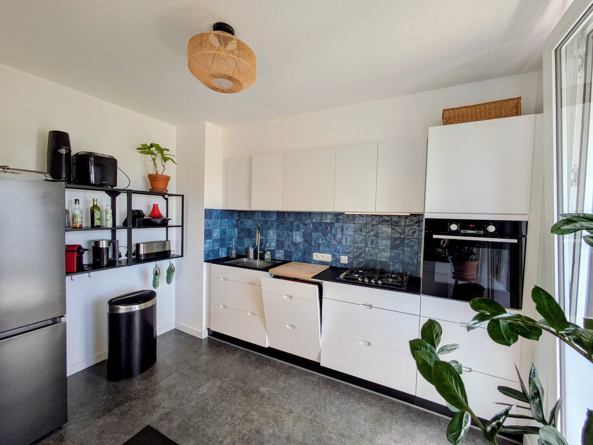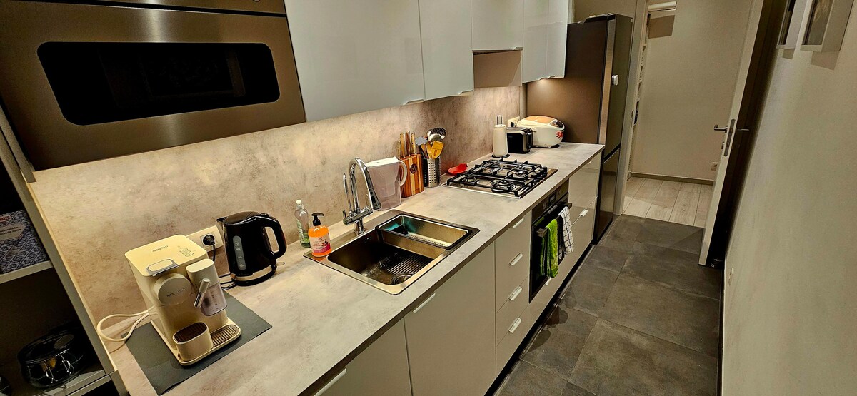 A bright and stylish 2-bedroom apartment in the heart of Uccle, offering a calm and spacious 100m~ layout with large windows and modern décor. The open living area flows into a fully equipped kitchen with an island, creating a warm and inviting space for relaxing, cooking, or working. Both bedrooms offer comfort with quality bedding and good storage. The modern bathroom features a walk-in shower and all essentials. The apartment feels peaceful, private, and filled with natural light all day.