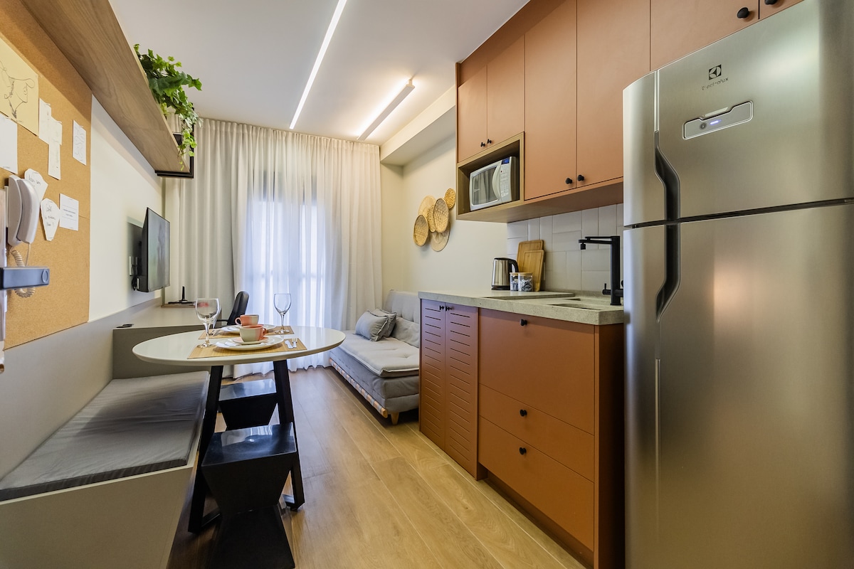 Istudiyo esisanda kulungiswa, esinesitayela saso, esedolobheni nendawo yonke. Izinga eliphakeme, elihle, elinobuciko futhi elisendaweni enhle, elinombono onelungelo lesitezi sama-21 se-Allianz Parque. Kanye nezitolo ezihlukahlukene, izindlela zokuhamba, amapaki, izindawo eziphawulekayo nezakhiwo zebhizinisi. Istudiyo siphelele, sinombhede olala abantu ababili othokomele, ikhishi elinazo zonke izitsha, i-minibar enesiqandisi ne-inthanethi enejubane eliphezulu. Ilungele abantu abakwazisayo okokuzithokozisa okungenakulibaleka nokuhlukile.