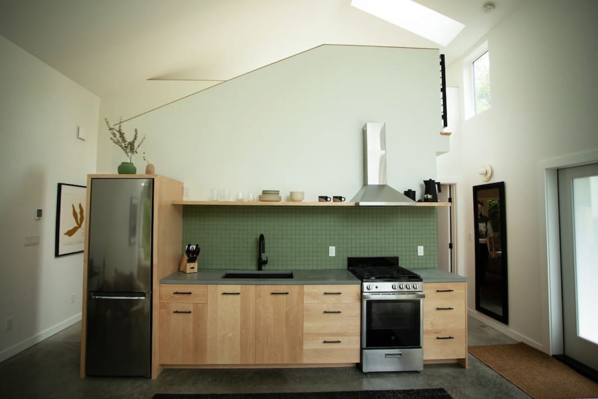Jabulela okungcono kakhulu kwemihlaba emibili kule ndlu eyakhiwe ngamapulangwe yesimanje, evulekile ehlanganisa idizayini enhle nobuhle bemvelo. Le ndlu eyakhiwe ngamapulangwe entsha yayiklanywe ngokucabangela kusetshenziswa izinto zemvelo, ihlanganiswe kalula nendawo yayo yakudala yamahlathi Amamitha-skwele angu-1100 Amakamelo okulala angu-2 + usofa ophindwe kabili (ulala abangu-6) Ubhavu wamanzi ashisayo Ubhavu we-soaker neshawa yokungena w/ phansi okushisayo Amashaja e-EV Umshini wokuwasha/wokomisa Ikhishi elinakho konke I-fireplace