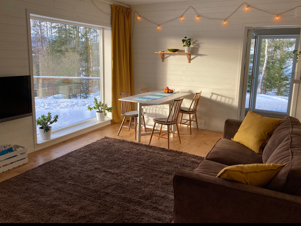 Lapha uzothola indlu encane ebukekayo endaweni ethulile nengokwemvelo. I-sauna nendawo yokosa inyama kuvulande onombono omuhle. Amamitha angu-50 kuphela ukuya emanzini. Kukhona futhi imisebenzi eminingi kule ndawo. Indlu inokubuka kwechibi, ukudoba, ihlathi, ukuhamba ngezintaba kanye nezindawo zokubhukuda ezizungeze indlu. Indlu yokuhlala ihlotshiswe kahle ngakho konke ukunethezeka ongase ukudinge. Kukhona indawo yokubasa eyenza indlu ibe yindawo ethokomele kakhulu uma kungenzeka. I-Wifi iyatholakala.
