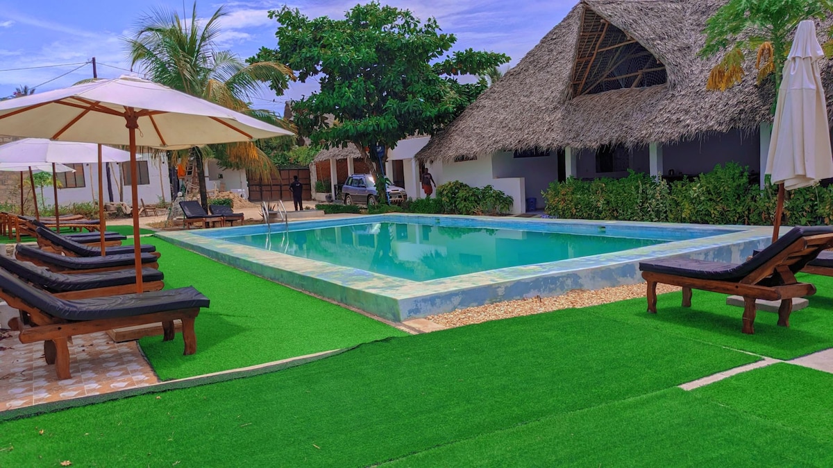 You'll feel right at home in one of Zanzibar's most beautiful, exclusive, and secluded locations. What our guests love about staying with us: - Outdoor Cinema - 24/7 Security -Hammock with Milky Way views - Beach 4 min walk - The Rock Restaurant – 4 min walk - Blue Lagoon Snorkeling Paradise – 4 min walk - Maalum Caves – 20 min drive - Jozani Forest (Red Colobus Monkeys) – 25 min drive