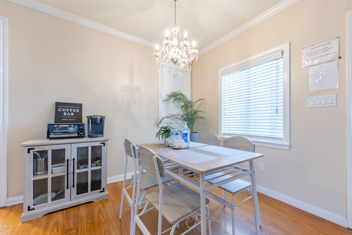 Ukwakhiwa okusha 2 Umbhede 1 Bath Modern Hidden Gem! Le Guesthouse inegceke layo langasese, indawo yokungena kanye nendlela yokungena imoto. Ngaphansi kuka-600sqft, Alikho itshe elishiywe lingaguqulwa lapho Ukwakha le ndawo. Lo mqondo ovulekile Ikhaya lifaka indawo yokuhlala ene-Sofa yokulala, i-50" Roku TV, itafula lokudlela lesihlalo esingu-4, Isistimu elawulwa kude ye-AC & Heat. Ikhishi Eligcwele Eline-Microwave, uhhavini, ifriji & Umshini Wokuwasha/Umshini Wokomisa. Indlu Yokugezela Egcwele ene-Tub & Shower. Amakamelo angu-2, 1 anombhede omkhulu nezinye imibhede emibili.