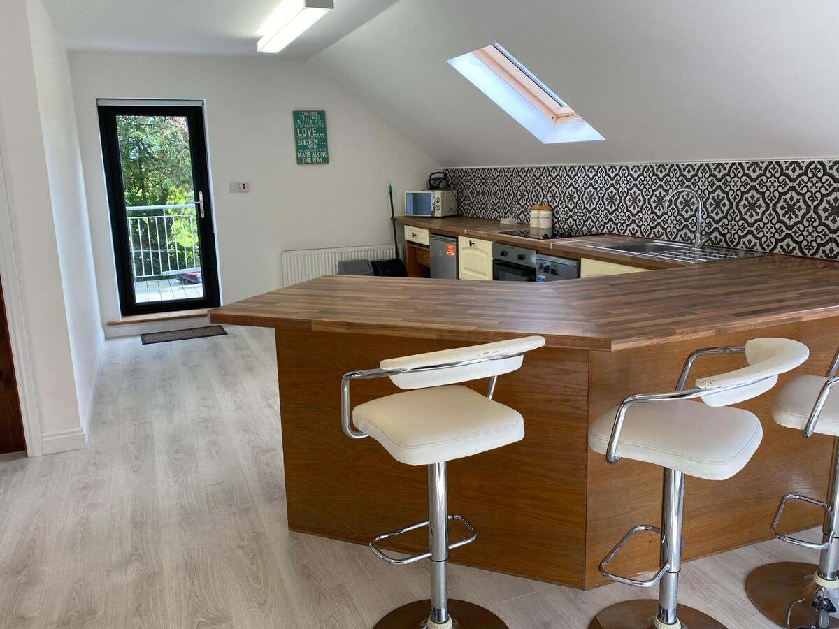 Sawubona usemagqumeni e-Sligo! Indlu yethu iyifulethi lesitudiyo elivulekile, lesimanje, elisesitezi sokuqala eliseduze nekhaya lethu lomndeni. Inefenisha ephelele esezingeni eliphakeme enabo bonke ububi be-mod. Igqamile futhi inomoya omuhle phezu kwehlathi lamapulangwe aqinile, lihlala epulazini lezimvu elisebenzayo. Kuyimizuzu emifushane engu-10 ngemoto ukuya e-Sligo Town, imizuzu engu-3 ukuya e-Castledargan Hotel nase-Golf Course, nemizuzu engu-5 ukuya e-Markree Castle enokufinyelela okulula kokuhamba ngezinyawo emahlathini, namabhishi adumile emhlabeni.