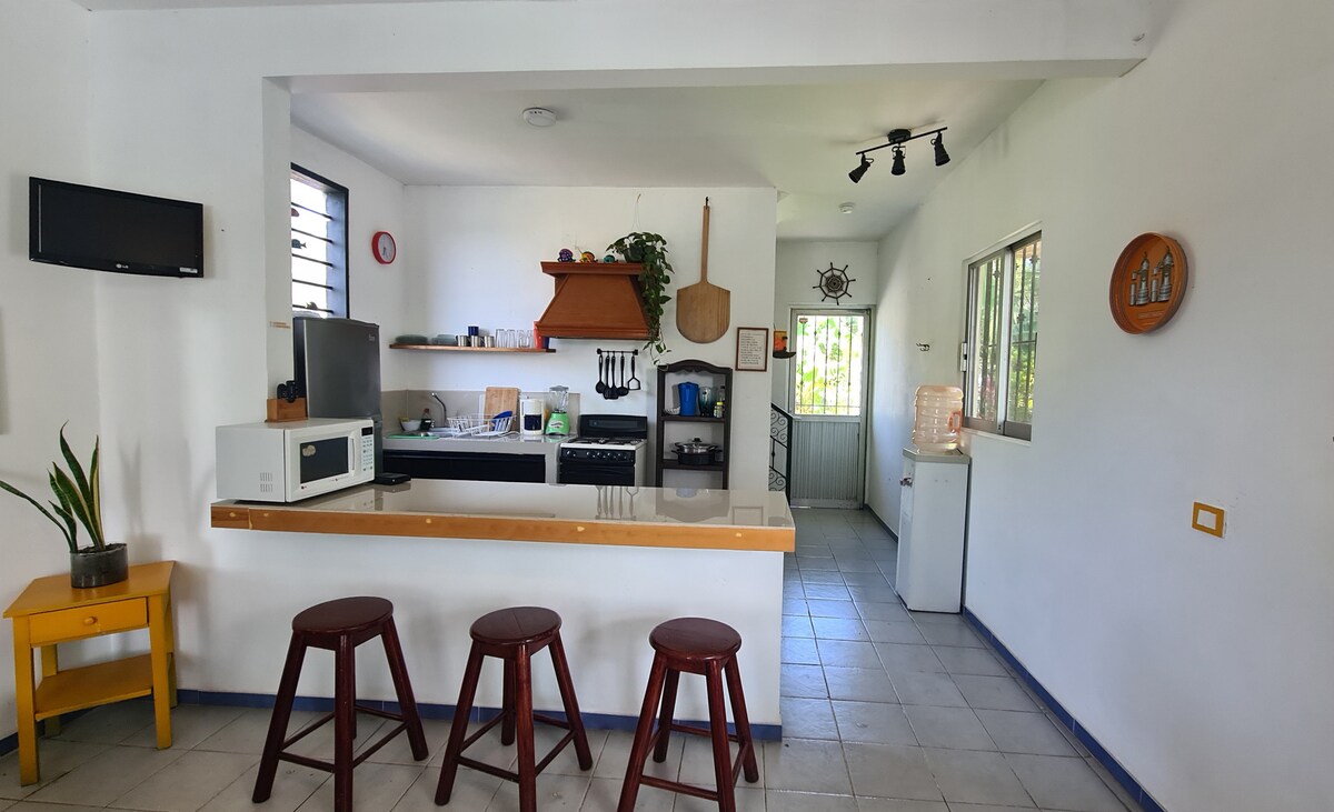 Descansa en esta casa ubicada en el centro de Chachalacas, a solo 200 metros de la playa. Ideal para familias o grupos grandes de 10 personas. Cuenta con 2 recámaras, aire acondicionado, 2 baños, cocina equipada, comedor, patio, hamacas y estacionamiento para 5 autos. La casa está a 30 min del Puerto de Veracruz. Es céntrica, puedes caminar al mar, al río, al parque y desplazarte a las dunas. Yo con gusto te presto 2 tablas de Sandboard. Persona adicional y mascotas +$200.