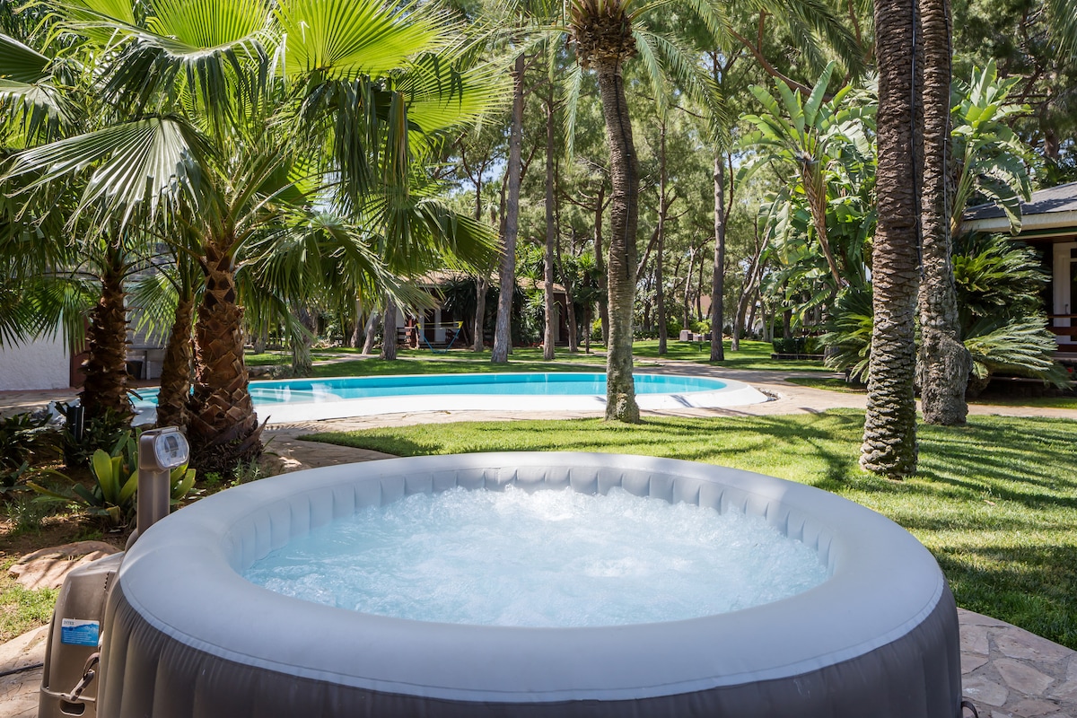 Iphansi/ifulethi endlini yeholidi eyakhiwe ngokhuni yomndeni owodwa, efinyeleleka kalula ezinganeni nabantu abadala. I-villa izungezwe izihlahla ze-cypress endaweni engu-1000m2. Ingadi enotshani, izihlahla, indawo yokubhukuda, indawo yokosa enama-pergola eyenziwe ngokhuni. I-sauna nendawo yokuzivocavoca engadini Idolobha elithule kakhulu, liqhele ngemizuzu engu-15 kuphela ukusuka edolobheni lase-Valencia, imizuzu engu-15 ukusuka esikhumulweni sezindiza. I-El Osito Shopping Center ngaphezu kwemizuzu engu-5, izitolo ezinkulu i-Aldi, i-Lidl, i-Mercadona 3min. drive. Indawo ekahle kakhulu ongayijabulela njengomndeni.