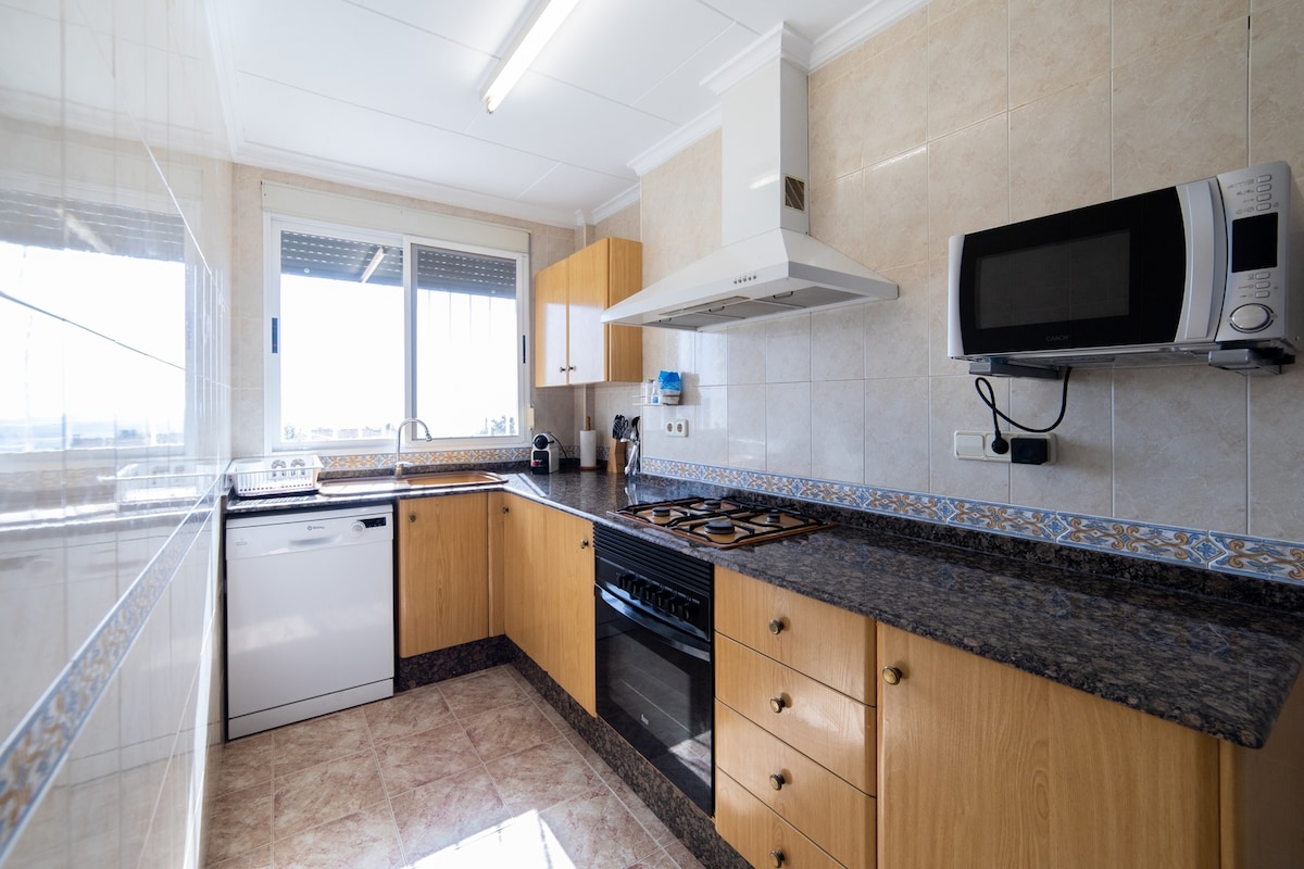 Letha wonke umndeni noma umuntu ngamunye ujabulele leli khaya elihle elinendawo enkulu ongayijabulela, nomndeni noma amaqembu omsebenzi. Indlu evulekile enelanga, ukuphakama kwezintathu, ikhishi elikhulu negumbi lokudlela, amakamelo amathathu, izindlu zokugezela ezintathu, i-terrace, i-terrace eceleni kwegumbi lokudlela elihlanganisiwe. Ukufudumeza ne-A. Conditioning kuyo yonke iyunithi. I-TV ne-Wifi kuyo yonke indlu. Itholakala edolobheni, ithule kakhulu i-5km Valencia, imizuzu engu-10 ukusuka edolobheni elisanda kulungiswa, likhululekile kakhulu.