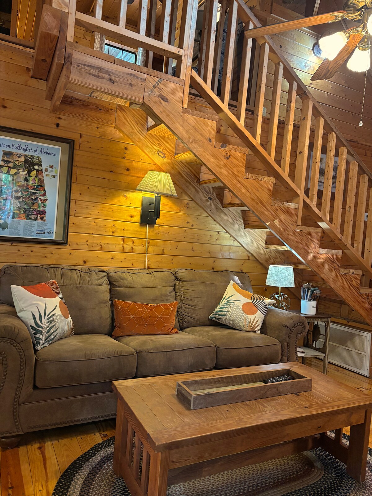 Ihlotshiselwe uKhisimusi! KULUNGISWE kabusha ngeshawa entsha yezitayela ze-spa. Inezindawo ezibukeka kahle, ubhavu wamanzi ashisayo, indawo yokubasa, izinkuni zokubasa, ama-smart TV, ne-WIFI. Imizuzu engu-5 ukusuka e-DeSoto Falls. Kufakwe indlela entsha yokungena evumela ukungena endlini yamapulangwe ngezinyathelo ezingu-4 nje. Le ndawo yokuhlala evulekile kodwa ethokomele inokuthile okungajatshulelwa yiwo wonke umuntu! Indlu eyakhiwe ngamapulangwe ivumela izilwane ezifuywayo ezingaphansi kwamakhilogremu angu-25. Azikho izinto zokubuyisa noma izinto ezisindayo. Ihlanganyela indlela yokungena enendawo yokuhlala eseduze. Qaphela- ama-acorn awela ekwindla.