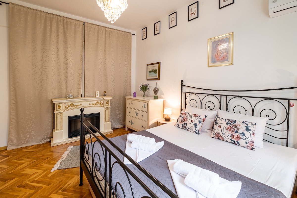 Itholakala enkabeni ye-Varna, emgwaqweni othulile, oluhlaza ozungezwe esinye sezakhiwo ezinhle kakhulu edolobheni kanye nemizuzu engu-2 uhamba ngezinyawo usuka e-Sea Garden🐚 Inakho konke ukuhlala kwesikhathi eside okune: -ithala elithandekayo lababili -Umshini wekhofi wase-Nespresso + ama-capsule -mshini wokugeza - umshini wokuwasha izitsha nekhishi elinakho konke -hamba nge-wardrobe -isikhulumi Zenze uzizwe usekhaya 🏡 Kulungele izilwane ezifuywayo🐾 Iphethwe ngumbungazi wendawo, ifihla izindawo ezinhle kakhulu edolobheni🌊