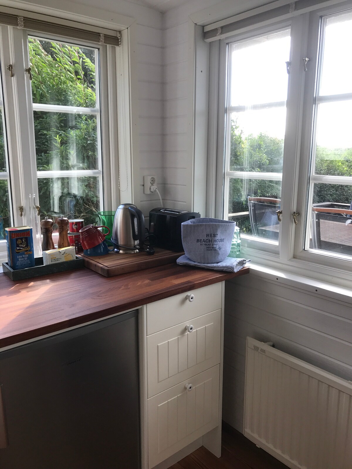 Siyakwamukela, Igama lami ngingu-Frans, eminyakeni embalwa edlule ngibe nokushaywa wumoya ngakho inkulumo yami akuyona i-100% kodwa ngiyaqonda isi-Dutch, isiNgisi nesi-Sweden. Ikamelo lokuphumula, ikamelo lokulala negumbi lokugezela lakhiwe ngaphakathi egalaji elakho futhi (kuningi okokushisisa). Kuye kwafakwa ikhishi elincane elinesitofu,i-toaster, iketela, ifriji, i-microwave kanye namasevisi akho ayisisekelo.(Theres a crockpot futhi). Uma udinga noma yimiphi eminye imishini yasekhishini vele ubuze :)