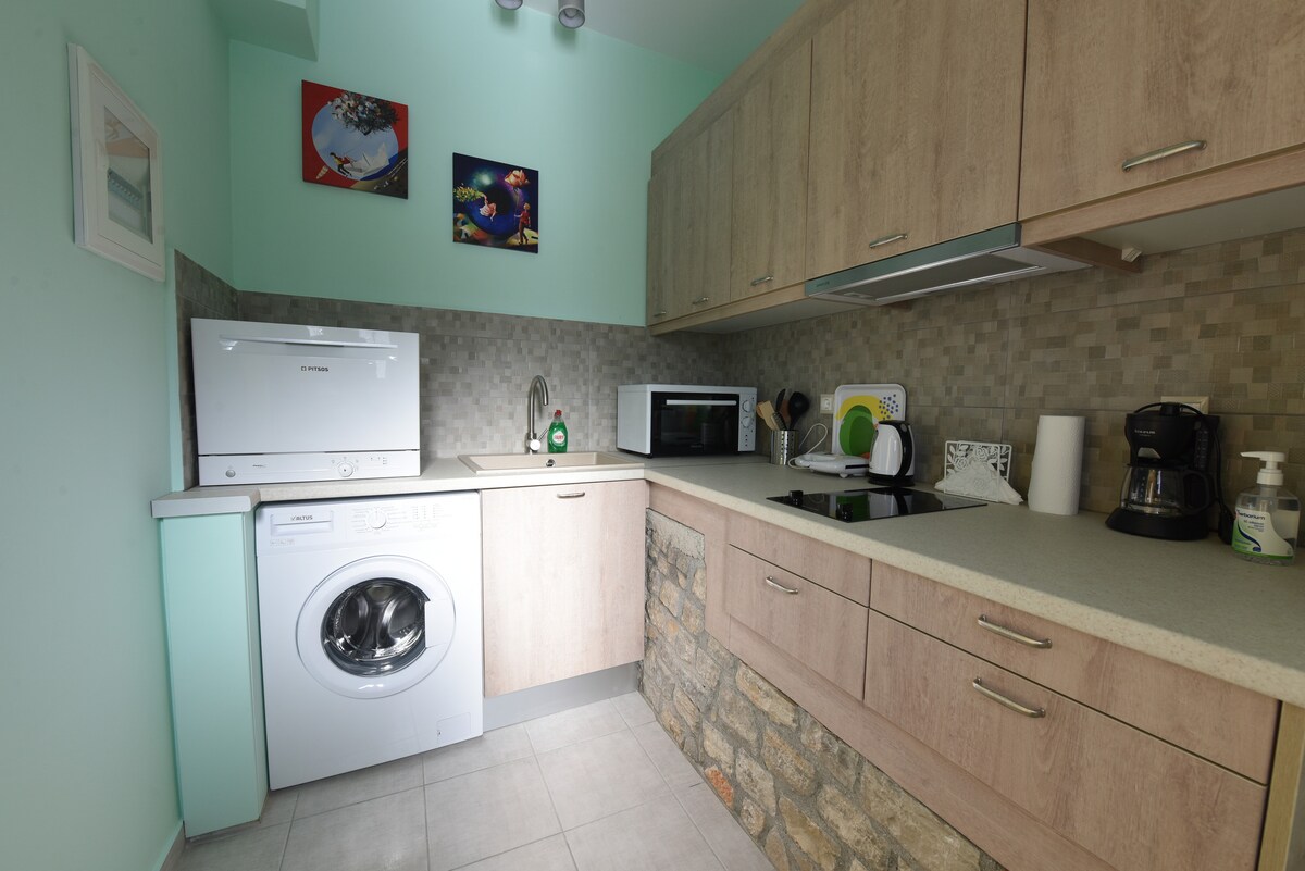 Jabulela ukuhlala emafulethini ethu anefenisha esesitayeleni. Ngosayizi ongu-28m ², ifulethi ngalinye linekhishi elincane elincane. Igumbi lokugezela linezinsiza zekhwalithi ephezulu eneshawa yemvula. Emibhedeni yethu enomatilasi ophakeme we-38cm wememori ye-foam uzolala ezulwini. Ukushona kwelanga kusuka kuvulandi wakho ngeke kungalibaleki. Ibanga ngemoto: Stadt Vathy 4min, Strand Filiatro 4min, Strand Sarakiniko 3min.