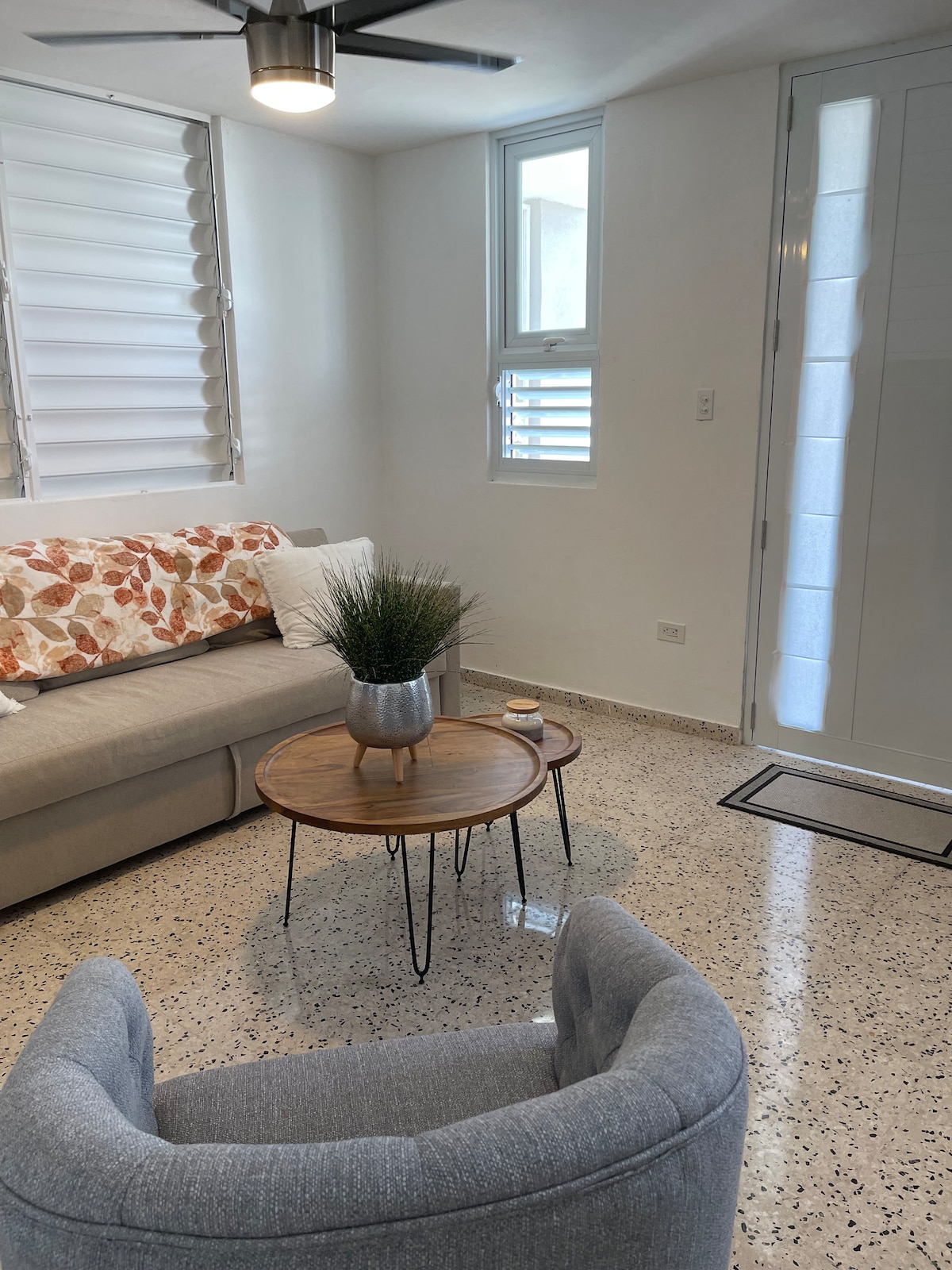 Acogedor apartamento de un dormitorio con aire acondicionado, TV, y Wi-Fi. La sala es luminosa y cómoda, perfecta para relajarse. Cocina equipada con microondas, cafetera y tostadora. El baño incluye secador de pelo (Blower). Disfruta del confort y la privacidad con estacionamiento gratuito. Ubicación ideal cerca de tiendas y restaurantes. ¡Reserva ahora y disfruta de una estancia inolvidable!