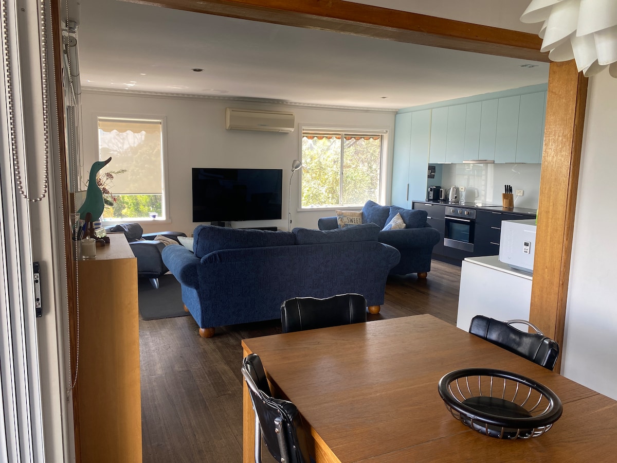 Indawo Hamba ngezinyawo ngamamitha angu-100 uye ebhishi lokubhukuda eliphephile, i-foreshore enotshani kanye nebhishi lezinja kuphela lase-Phillip Island. Ikhaya lethu elidala elinezitoreji ezimbili lithokomele lisendaweni enkulu enendawo yokuhlala yesimanje evulekile - ikhishi le-galley, indawo yokuphumula, igumbi lokudlela, ngaphansi kwe-balcony emboziwe nekamelo lokulala elikhulu phezulu. Ngaphansi kunohlelo olukhulu oluvulekile i-rumpus/ikamelo lokulala - i-hangout yezingane ekahle. Igumbi lokugezela elilodwa/indlu yangasese/izingubo zokuwasha, igalaji negceke elingemuva elivikelekile. I-Seahaven Escape ilungele imibhangqwana, imindeni, izilwane ezifuywayo namaqembu obungane