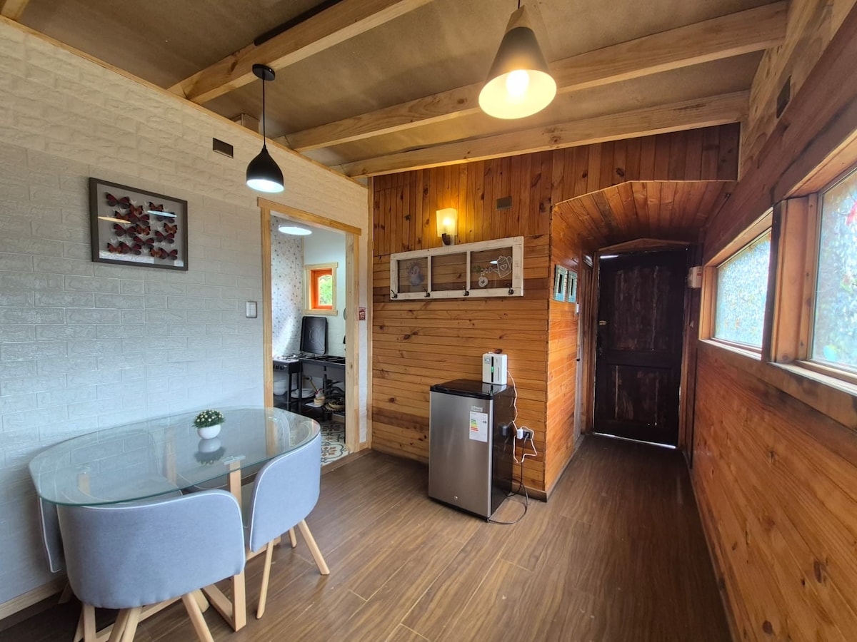 "Ikhotheji yasemaphandleni yabantu abangu-2 e-Malalcahuello, ezungezwe ihlathi lendawo futhi enendawo yokungena ngokuqondile emfuleni. Phumula ku-tinaja yethu eyimfihlo (eyengeziwe, akukho mkhawulo wesikhathi) futhi ujabulele isidlo sasekuseni esifakiwe. Imizuzu ukusuka eCorralco, iziphethu ezishisayo, imizila nezintaba-mlilo. Ilungele ukuhlukana, ukuxhumana kabusha nokuzizwa ujabule🍃.”