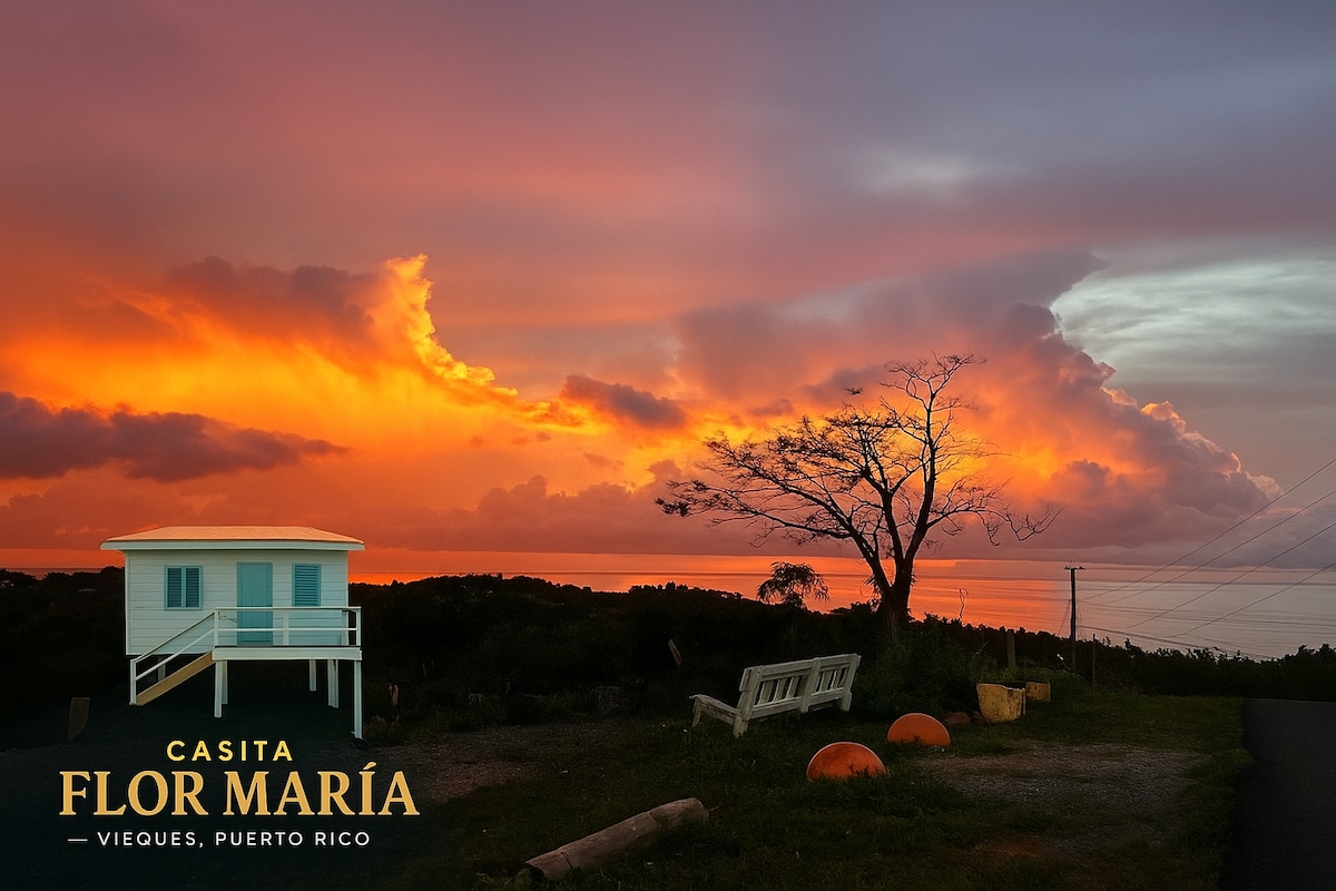 Casita Flor María Vieques w/ A/C, Kitchen & Sunset