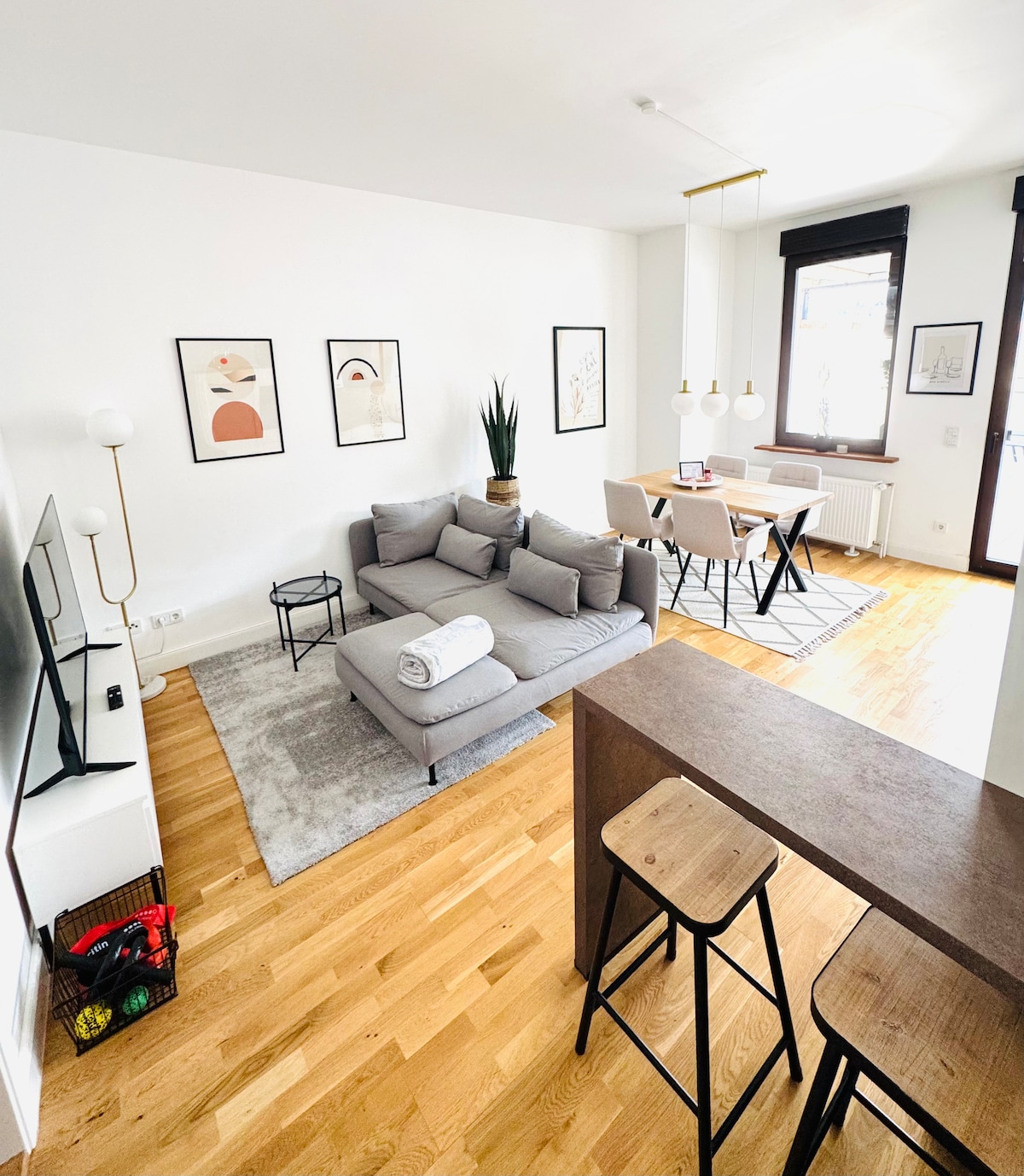 Welcome to Nico & Ronny! Our vacation apartment in the heart of Schwetzingen offers a stylish atmosphere and the highest level of comfort. The tasteful furnishings make it the perfect choice for your stay. We look forward to welcoming you as our guest. Make yourself at home! - 2 box-spring beds - 55" TV - NESPRESSO coffee machine - Tea and coffee selections - Fully equipped kitchen - Roof terrace - Central location