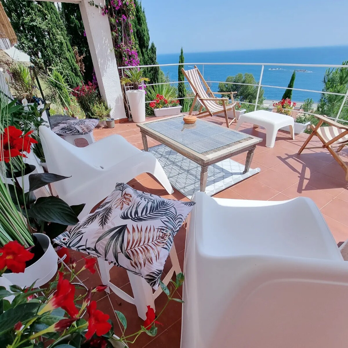 75m2 loft apartment with modern and unique architecture. Carefully designed, decorated with vintage-style furniture and art carefully selected over the years. This combination, along with a spectacular and impressive view over the bay of Cadaqués, makes it absolutely unique. It is located just 1 minute walk from Es Poal beach, about 45m away. PET friendly. We love animals. Please inquire privately about the extra cost per night for your adorable and furry friend.