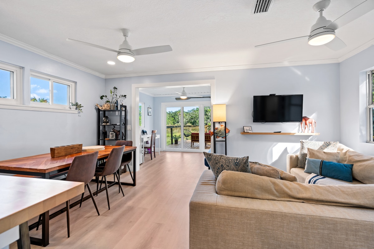 Vilano Beach, St Augustine! Jabulela ukuphuma kwelanga okuhle ngaphesheya komgwaqo ukusuka olwandle (namabhulokhi angu-2 eningizimu). Yidla ezindaweni zokudlela ezinhle eziqhele ngezinyawo ngenkathi ujabulela ukushona kwelanga phezu kwe-Inter-coastal Waterway. Ukufinyelela kalula edolobheni elingokomlando elinemizuzu engu-10 ngemoto/i-Uber noma ujabulele itekisi lamanzi usuka e-Vilano Beach Fishing Pier. I-Guana Tolomato Matanzas Reserve itholakala ngamakhilomitha ambalwa enyakatho emizileni yokuqwala izintaba/yokuhamba ngebhayisikili, i-kayaking nokudoba. Ikhaya lonke ngelakho!