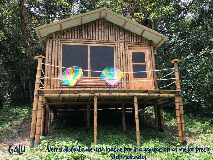 Indlu eyakhiwe ngamapulangwe e-Guadua ngaphakathi kweHlathi lase-Galu