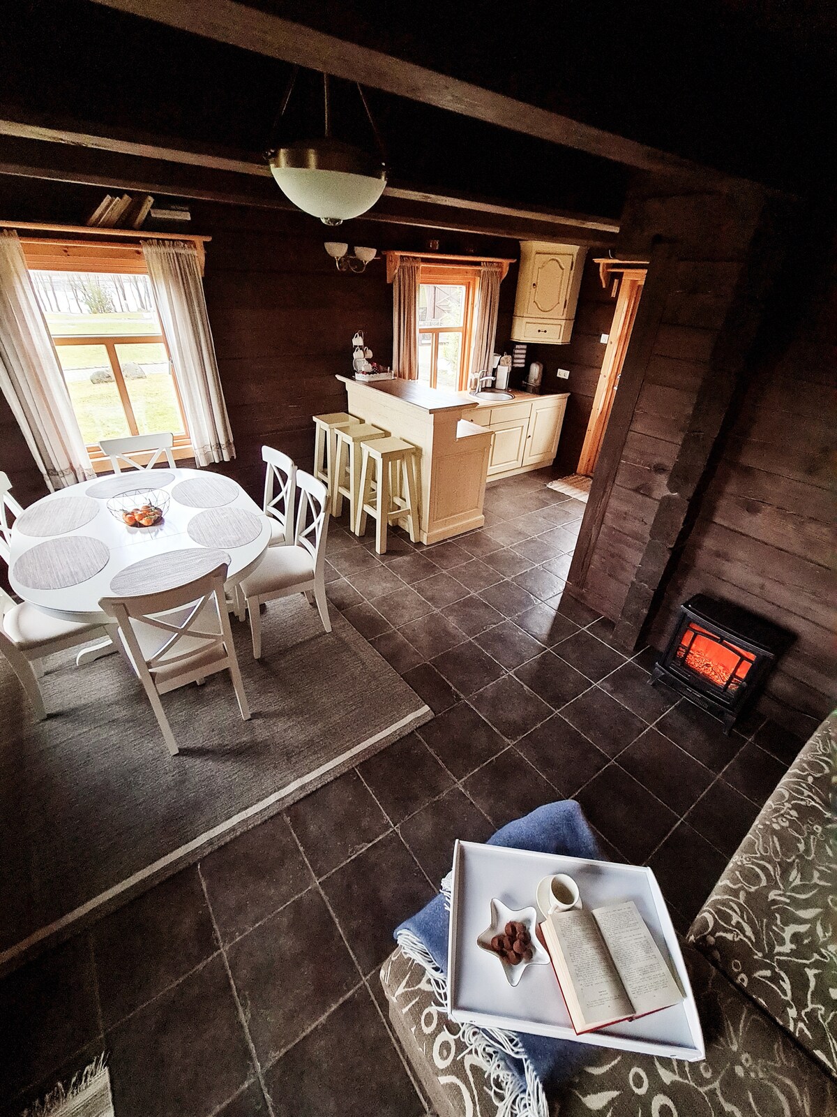 Yindlu esemaphandleni esogwini eseduze ne-Žakas Lake enokubukeka okuhle okubheke kuyo. Le ndlu inamakamelo angu-2 ahlalisa izivakashi ezingaba ngu-8. Indlu ifanelekela ngokuphelele ukuhlala kwesikhathi eside njengoba ifakwe i-air conditioning yebhrendi eyaziwayo, indawo efudumele namanetha omiyane emafasiteleni. Uzothola ithala langaphandle elinophahla kanye netafula elikhulu lesidlo sakusihlwa, i-TV, i-Xbox, i-fireplace, i-trampoline nokunye okuningi okufakiwe enanini. Ishubhu elishisayo libiza ama-eur angu-90 ne-Sauna 90 eur. ingalala abantu abangu-2