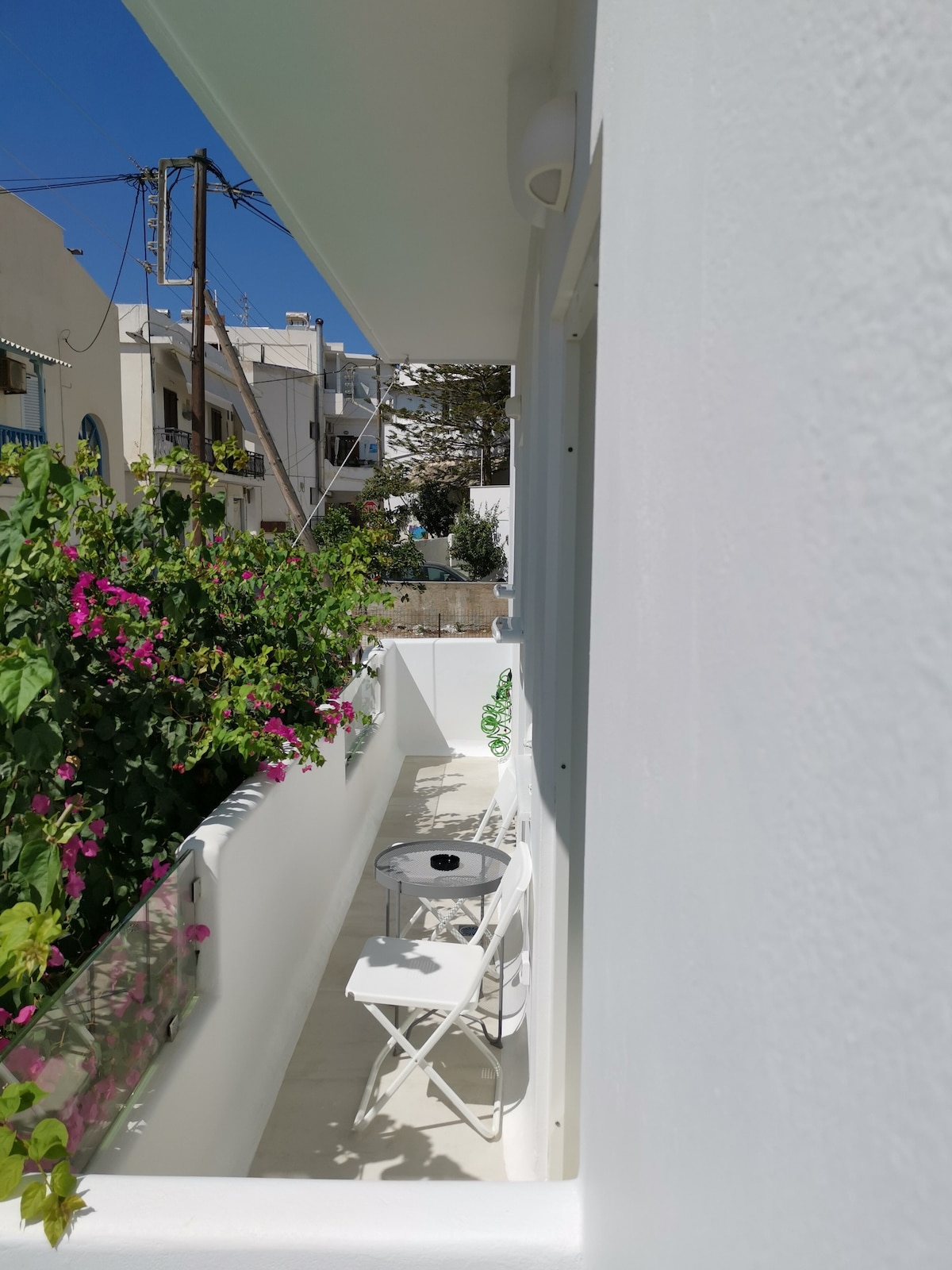 Vula izivalo eziluhlaza okwesibhakabhaka bese ungenisa umoya opholile, bese uthatha ukudla okulula etafuleni lasekhishini eliphathekayo lasedolobheni endaweni yokuphumula engasemanzini. Ngena ku-veranda evulekile, enamaqabunga ukuze uthole iziphuzo zokushona kwelanga ngokubuka ulwandle okungavinjelwe! Ifulethi lime eceleni kwebhishi elinesihlabathi lokubhukuda ekuseni kanye nemizuzu engu-2 yokuhamba ukusuka enkabeni ye-Naousa nesikwele sayo esiyinhloko. Izitolo, izindawo zokudlela, amabha, namakilabhu aqhelelene ngezinyawo, nokho indawo ithule kakhulu futhi izolile!