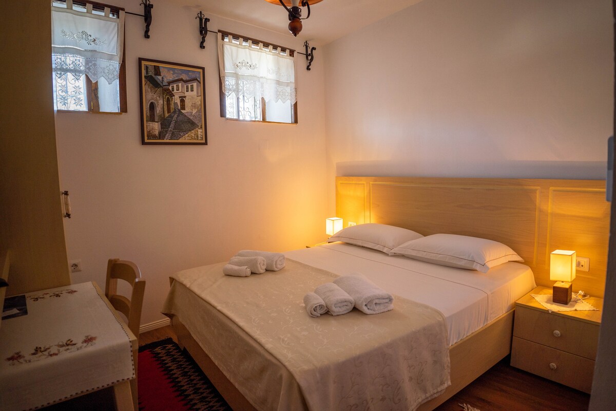 Itholakala enkabeni yomakhelwane odumile wase-Berat, sinikeza izivakashi zethu igumbi elithokomele nelithokomele. Leli kamelo lakhiwe endlini elinganiselwa ku-300 ubudala, esanda kulungiswa ngo-2019. Sihlose ukulondoloza izici zendabuko zendlu, futhi sinikeza umbono wokuthi impilo yase-Berat ibilokhu ibiyiyo esikhathini esedlule, kuyilapho senza ukuhlala kwakho endaweni yethu encane yezivakashi. Yonke imininingwane iklanywe ochwepheshe bendawo kanye nezingcweti engqondweni yesiko.